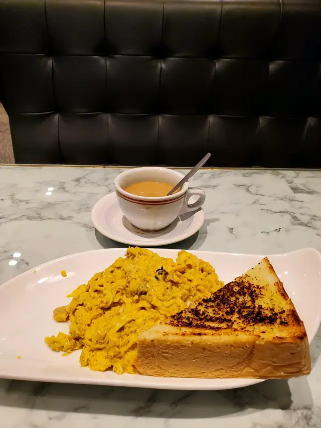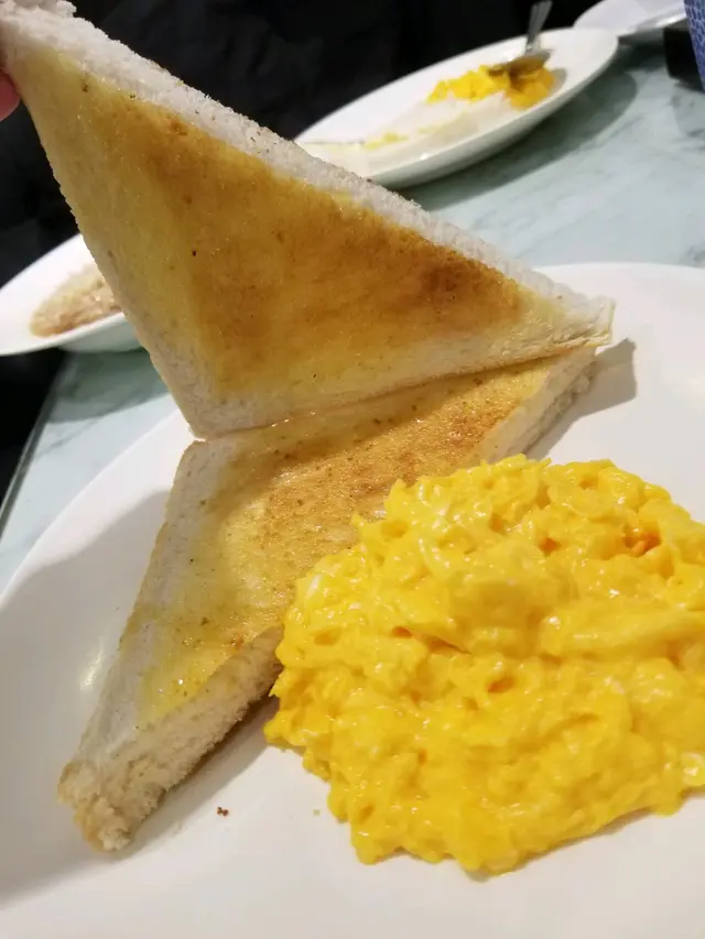 現在早餐普遍要花費30多元。我看輕湯粉和煎炸雞魚豬,重視炒蛋和麵包。炒蛋和烤麵包可反映該店質素的高低。此店的F早餐份量如大兵艦,炒蛋面積長約15厘米,厚厚的,比快餐店多兩倍。啖啖有黑松露味,滿口碎菇片,蛋嫩芳香,是上上品。等了7分鐘,是即叫才做之作。煎腸是用大直徑,切成薄片,墊在炒蛋之下。名辣腸,全不辛辣。麵包是港產規貨,特別糯綿,具口感和飽腹。以蒜蓉炸焗,油香盈腔,滋味倍增。只是咖啡平庸而已。查看更多