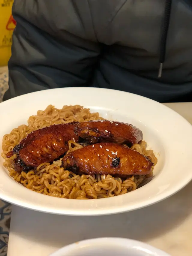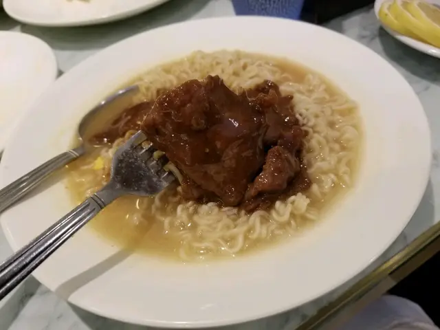 今日lunchtime過左去北角呢邊食lunch,黎到一點鐘左右門口都有幾堆人排隊,但好快我地就入到去坐喇。第一次黎呢度食lunch,同事好快就已經諗到要食特餐,所以我都跟風一齊揀常餐B。個餐我揀左豬扒炒出前一丁,蒜蓉包同埋炒蛋。炒蛋同蒜蓉包上見,個包熱辣辣幾脆幾好味。食到一半就出前一丁就到喇,豬扒夠大塊,係抵食嘅。而個麵味道亦都唔錯。份量都幾多其實我食到一半已經飽飽地,下次會試下瑞士雞翼撈公仔麵。查看更多