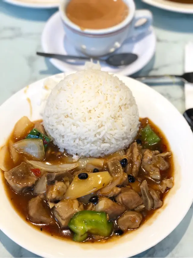 同朋友食個快的午餐, 試吓這間紅磡冰室. 我們12.15pm 已經好多人, 但仍未需要排隊, 要搭枱坐, 都正常的. 朋友選擇了午餐的星洲炒米 $54 包熱飲一杯, 分量足夠, 不太油膩, 味道OK, 朋友嫌唔夠辣. 我點了餐牌的豉召排骨飯 $52,熱飲加 $6,因為不是午餐,等左約15分鐘,排骨都比較多,質素一般,尚可以。至於奶茶及鴛鴦,不過不失。12點半後開始有人排隊, 至於服務就真是一般. 整體來說,以此價錢,算OK,留意可以去。查看更多