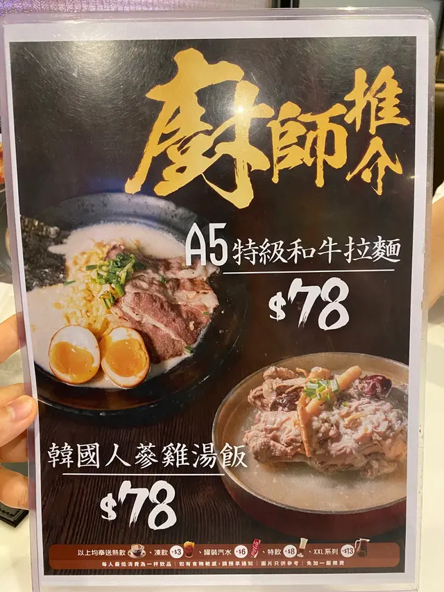 喺公司附近、但一直未試過。夜晚收工同同事嚟食個快飯!🐤蔥油雞扒三眼煎蛋飯🍳$67好食👍🏻👍🏻👍🏻非常推薦👍🏻👍🏻👍🏻老實講~雞蛋好食過雞扒!蛋黃半生狀嘅流質質感餸飯真係冇得輸!個蔥油汁都好好食、如果塊雞扒再大塊啲就好啦!+$8轉咗紅豆冰有勁多紅豆🫘好大杯、淨係飲杯嘢都飽飽哋😅+$12追加小食 炸雞翼3隻即叫即炸、外皮脆口!同埋好抵食!另一款主食🍜A5特級和牛拉麵湯頭幾香、飲完唔會口渴拉麵當然始終唔會夠出面日式拉麵果啲咁好食、不過以呢個價錢嚟講算係好唔錯👍🏻和牛嘅肉質好嫩、吸收埋啲湯汁一齊食又幾正🤤+$10 追加小食 炸春卷4件+$12 追加小食 唐揚炸雞4件以上兩款都係不過不失、正常嚟貨質素、不過因為都係新鮮炸起、所以好香脆!好食💕+$8轉飲 歡樂菠蘿冰無試飲、不過望落都係好大杯😳查看更多