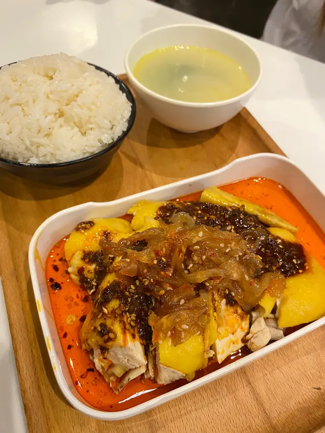 雖然一開始冇影到相,但係一拎到嚟啲雞都冇放好散修修咁樣放第一次見,雞皮多,雞皮色好沉一睇落去就唔新鮮,有雪味,未食過啲咁又鞋又靭嘅雞,又乾。啲飯濕到好似食緊糊仔咁,個湯奇奇怪怪加啲海帶落去。甘樣$66 蚊 💩另外朋友食茄汁焗豬扒意粉,啲肉好韌啲汁唔夠味,要自己加茄汁,話食落似學生餐。另外一個食咖喱雞扒飯,個雞扒嘅係中學飯餐嘅size,唯一正常啲就係漢堡扒咖喱蛋飯,但係一睇就知快扒係買返嚟,好難唔難食。查看更多