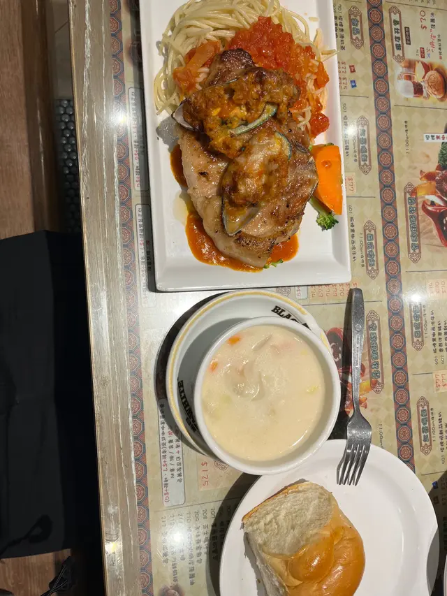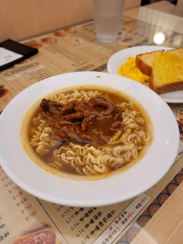有啲早餐,唔係食嚟飽,而係食嚟安靜。呢碗火腿通粉,湯底唔濃唔鹹,飲落去有一種「好耐冇人煲湯畀我飲」嘅感覺。通粉煮得啱啱好,唔爛唔硬,火腿絲同雞絲鋪喺面,冇乜驚喜,但就係熟悉。熟到可以唔使諗,食落去都會笑一笑 🍜🥄旁邊個餐包夾蛋,面頭燒得金黃鬆化,咬落去有少少脆,中間係一隻煎到啱啱好嘅太陽蛋,蛋白熟晒,蛋黃微微流心,啖啖都係麵包吸住蛋汁嘅幸福 🍞🍳然後係今日嘅靈魂——鴛鴦。紅茶香得夠,咖啡唔酸唔澀,奶味包得好,一啖落去,係精神未醒但心已經穩定咗嗰種感覺 ☕️🧋冰室嘅世界好吵,但你嗌咗呢一份早餐,就可以靜靜地坐低,放低電話,咬啖麵包,咩都唔諗。…查看更多