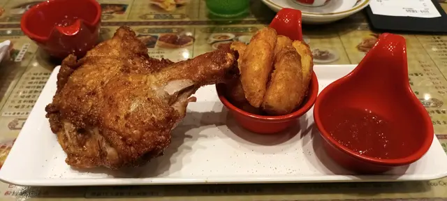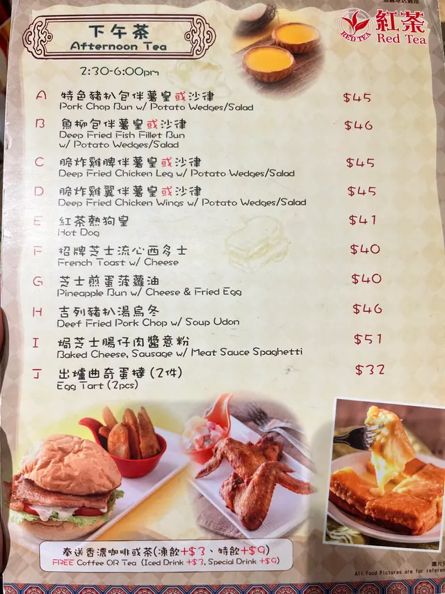 【驚喜炸炸炸物】 唔太餓,避開午市食個Tea。我見下午茶有炸雞脾一定會試試,因多數得炸雞翼;今次都叫左炸雞髀,幾似生炸,金黃外皮咬下簌簌作響,肉汁在酥脆麵衣下保留著。😋配餐的薯皇令人驚艷,粗切鎖住薯香,外殼焦脆如薯片,內芯卻保有綿密濕潤感,顛覆茶記薯條總乾硬的宿命。 驚喜來自魚柳包,厚切魚柳裹著薄脆炸漿,搭配酸香醒神的沙律醬與鬆軟漢堡包,邪惡卻停不了口,朋友一陣就吞噬左。奶茶茶膽醇厚帶炭香,無加糖都好飲,檸茶酸甜比例恰好,兩杯飲品都展現港式茶記基本功。查看更多