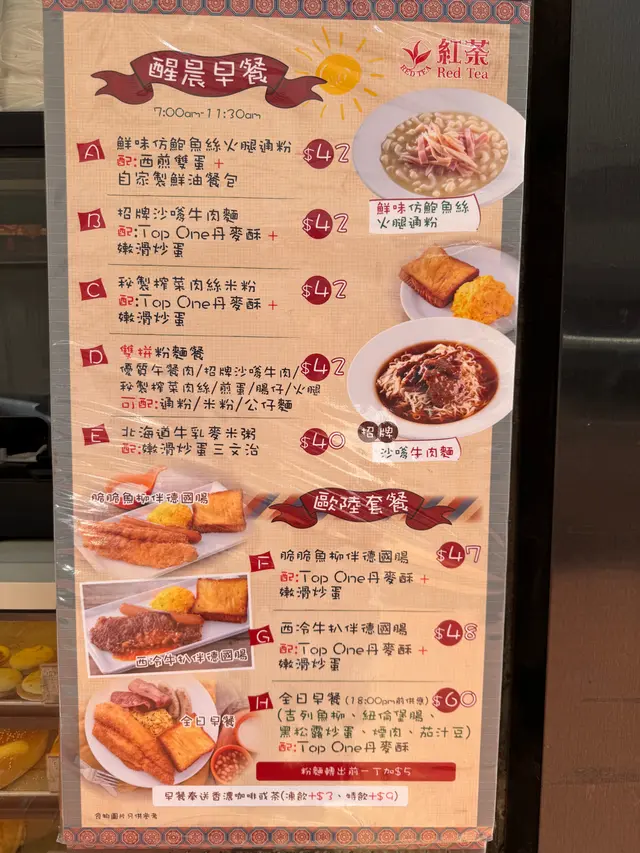 黎到荃灣行完拉野食,lunch可以簡單啲食之下見到紅茶唔駛排就入去食,食物質素還可以吧不過不失,點左個特餐,沙爹牛麵,多士炒滑蛋,凍檸檬茶。沙爹牛麵,普通味道不過麵唔係太林,所以口感ok既,沙爹牛只知食緊肉,香港食牛普遍無咩牛肉味。多士炒滑蛋,正常味道。滑蛋只係蛋味唔夠濃,整體可以勉強接受。凍檸檬茶,茶底ok 。服務方面,態度算正常,比起其他分店叫好,試過其他分店食完一次就唔再去,不過態度正常只係今次經歷。。。。總結。。。咁岩見到唔駛排所以就食左個特餐。
