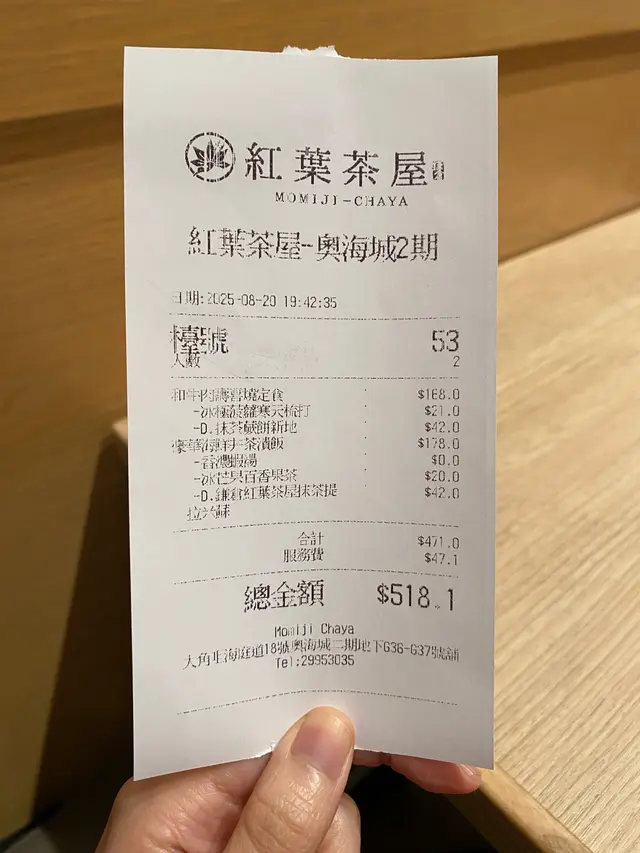 紅葉茶屋 (奧海城二期) (大角咀) 網址: https://s.openrice.com/QrbS0OSe900 地址: 香港大角咀海庭道18號奧海城二期地下G36-G37號舖 電話: +852 29953035