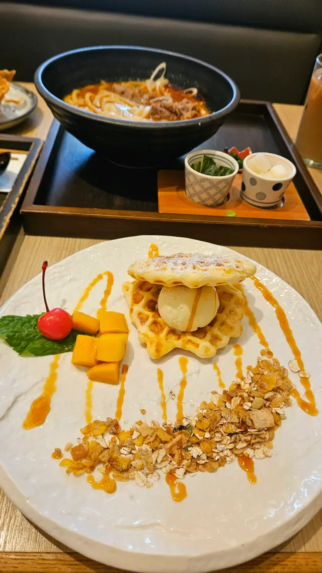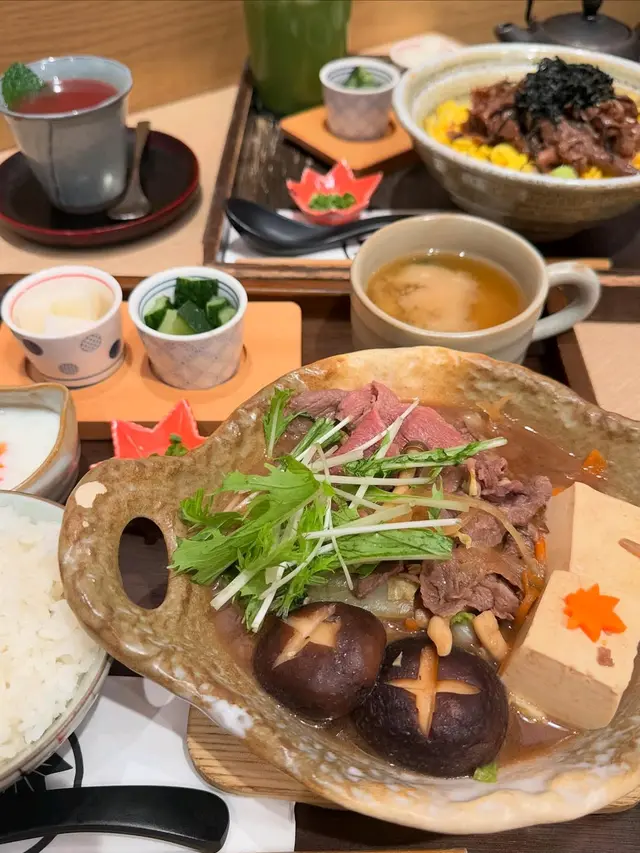 餐廳環境日系簡約,氣氛舒服,幾啱同朋友慢慢傾偈又影下靚相📸~食物選擇多,擺盤精緻,其中甜品表現最為突出🤩。🌗和牛壽喜燒定食 $168一上枱已經香氣四溢🤤,甜甜鹹鹹嘅壽喜燒汁包裹住油香滑嫩嘅和牛;配料豐富,豆腐菇菌樣樣有,仲可以拌埋溫泉蛋同白飯🍚,邪惡又幸福~🌖豪華海鮮丼茶漬飯 $178滿滿嘅刺身包括甜蝦、三文魚腩、吞拿魚、帶子,新鮮肥美又鮮甜。再加上茶漬湯,米飯吸收湯汁後更易入口,適合秋天進食。🌖抹茶蕨餅新地 +$42抺茶蕨餅質地軟糯,抺茶同朱古力雪糕以外仲有牛奶新地🍦,微甘茶香同奶香融合,甜度啱啱好,不膩又滿足~🌖鎌倉紅葉茶屋抹茶提拉米蘇 +$42壓軸必試!Tiramisu質地軟滑,蛋糕濕潤細膩,抹茶香濃帶微甘,層次豐富,甜而不膩,完美收尾~🌗冰芒果百香果茶 +$20芒果嘅香甜配上百香果嘅酸香,清新果香同茶香完美結合,夏日感爆棚☀️。🌗冰極菠蘿寒天梳打 +$21超解渴清新!菠蘿酸甜爽口,寒天QQ彈彈,配埋氣泡梳打,飲落即刻醒神。-#紅葉茶屋 #日式料理 #壽喜燒 #海鮮丼 #茶漬飯 #甜品控 #打卡美食 #soso_foodie2025 #soso_hk2025#soso_100至200元 #soso_200至400元 #soso_400至800元 #soso_800元以上 想睇同區食店介紹?可以參考👇🏻👇🏻#soso_九龍 #soso_大角咀想睇同類食物介紹?可以參考👇🏻👇🏻#soso_西式 #soso_日式 #soso_甜品 #soso_丼飯 #soso_海鮮 #soso_火鍋…查看更多