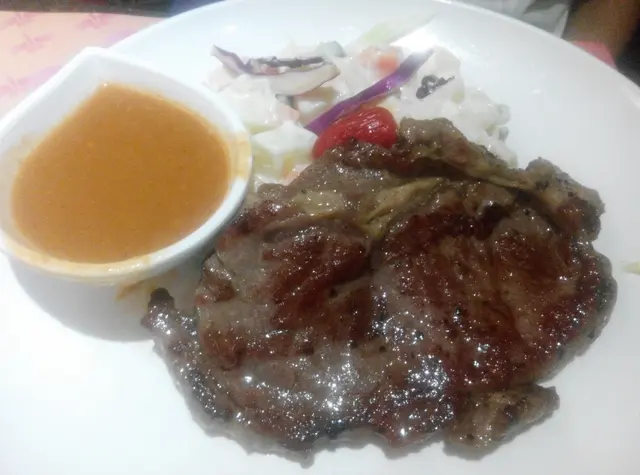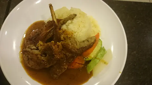 難得今日早收工,揾埋個中學同學去左大埔中心食晚飯,於是我地去左中學時期成日食果間餐廳,懷緬一番。店內格局,甘多年都冇大變動,只係翻新左。我地兩個都各自叫左一客Set Dinner。 Set dinner有湯,餐包,主菜同一杯野飲。主菜我叫左個黑椒法式羊排配飯,落左單之後,羅宋湯同包好快就黎到。羅宋湯蔬菜配料充足,而且味道不算太鹹和太辣,味道適中。餐包挺熱的,系岩岩整熱的。飲完湯,我個主菜就到左。黑椒汁味道不太辣但勝左夠濃,羊排不太酥,羊排煎得不錯,不會過火了,飯系一個炒飯,唔係白飯甘簡單。整體份量足夠,價錢不算太貴,而且質素也不錯,性價比高。服務上在部分既野上面都挺細心。…查看更多