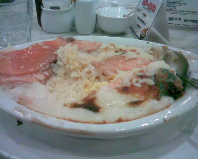 今天是老婆仔畢業拍照日的重要日子我做了一整天的攝影師都沒有時間吃午餐活動完結後我們攜著一袋二袋伴隨餓扁了的肚子到沙田吃晚飯來到了紅螞蟻時間尚早還有很多位子可選擇不過原來晚飯套餐只有一個二人套餐可選擇計算過後決定散叫食物要了芝士焗煙三文魚西蘭花飯 和 忌廉汁三文魚天使麵又加了一個小食 - 田螺肉焗薯蓉老婆仔還想要甜品, 最後選擇了朱古力梳乎里主菜之一芝士焗煙三文魚西蘭花飯是我點的沒想到只有一件西蘭花也好意思寫在菜式名上不過幸好芝士很多幾乎是包圍了整個飯而且煙三文魚也很好味燒得剛剛好又不會太濃味所以配合芝士一起吃也是不錯的配搭另一個主菜忌廉汁三文魚天使麵看起來不是太大碟不過天使麵配合忌廉汁總是最好的選擇加上三文魚也很多鮮味也可以接受所以也可一試至於小食 田螺肉焗薯蓉即使我本身不太愛吃田螺但沒想到配合薯蓉一起吃也是相當美味薯蓉也焗得很軟雖然份量不多但也很飽肚這個朱古力梳乎里一捧來時我和老婆仔都嚇了一跳沒想到會是這麼大份但是吃起上來卻是十分普通裡面是空心的就不提了畢竟梳乎里總會有點空心但味道卻十分淡幾乎吃不出朱古力味比雪芳蛋糕的朱古力味更淡所以只是金玉其外而已不過這餐也是十分豐富一次過吃了午餐和晚餐的份量又嚐到不同的味道…查看更多