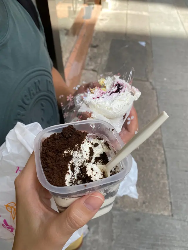 常常都會到紅豆烘焙吃布甸法包這裏的布甸法包價錢相宜、性價比高又有不同口味普普通通的味布甸法包就已經很吸引這天來到時發現四點才開始出售布甸法包於是找了其他的產品嘗試看到這個扮冰鎮奶茶的甜品造型也很吸引有真飲管也有扮冰塊的涼粉啫喱可是 最後選擇的是奧利奧甜品以及一個很大塊的糯米糍,有很多味道、我選擇了藍莓味。說到這兩個甜品首先雪櫃不夠凍,出嚟的甜品已經是感覺暖口感不好,而且味道甜度也是麻麻 不甜不好吃的:(查看更多