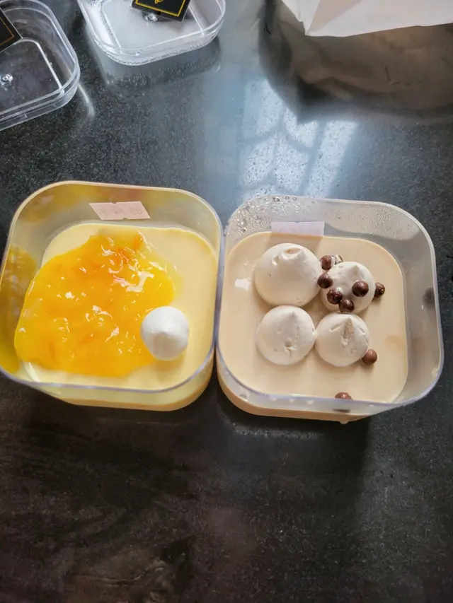 與眾樂樂後,折返途中經過這家烘焙店,小人未有被它出名的布甸麵包吸引到,反而對於各式各樣的奶凍產生了興趣,遂即買了楊枝甘露及咖啡味各一款回家享用。奶凍以一個小小的透明盒子承載著,小巧精緻,可愛得來竟帶點高質的級數。小人先試楊枝甘露味,第一啖入口,便覺得很重芒果香,奶凍幼滑柔軟,完全不會過實,一滑入喉!跟著的咖啡味更加精彩:當滑溜的奶凍踫上濃郁醇厚的咖啡,簡直就是天生一對!難怪買的時候只賣剩一盒!下次定必試其馳名的布甸包!查看更多