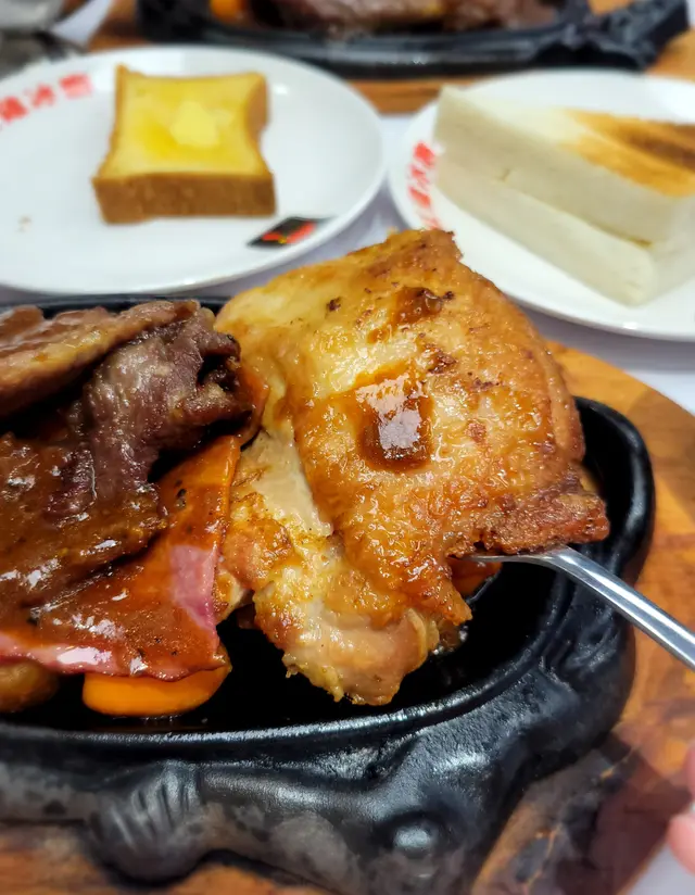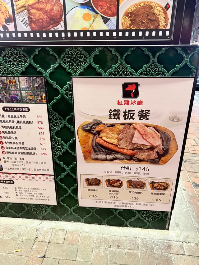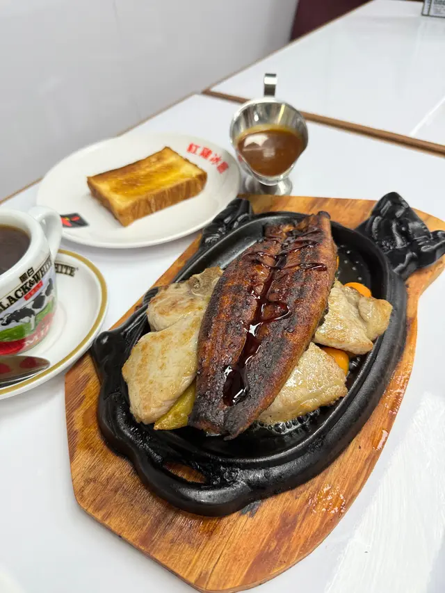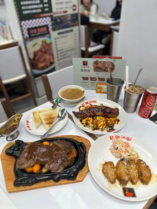 尖沙咀隱世茶記|紅雞冰廳呢餐直接食到我飽到癲🤤🔥 琴日夜晚沖去尖沙咀呢間「紅雞冰廳」,本來淨係想隨便hea餐tea,點知成餐勁過癮,食到個肚凸凸都仲想食多啲!🤰🏻 一坐低個眼鏡哥哥已經笑住行過嚟,態度超nice,推介menu嗰陣仲會講邊樣係近期最hit嘅款,記單又快手,全程貼心到痹,夜晚嚟呢度食嘢連心情都變好晒💯! 今次叫咗幾樣招牌嘢,每款都驚喜滿滿:✅ 雞脾套餐雞脾炸到外層脆卜卜,咬開入面juicy到汁都biu出嚟🍗!有得揀沙律或者薯條或者春捲或者薯餅,薯餅香口鬆化,配埋凍紅豆冰,個甜度啱啱好,消暑又夠晒爽~ ✅ 百搭 滷水雞翼套餐滷水雞翼鹵得超入味,連骨頭都想吮埋晒啲汁🤤!沙律新鮮脆嫩,凍檸檬利賓納夠晒refreshing,呢個set真係抵到無朋友! ✅ 焗菠蘿豬扒飯套餐菠蘿甜酸開胃,豬扒厚身又juicy,焗到個cheese微微焦香,撈埋白飯食真係停唔到口🍍🧀! ✅ 鐵板什扒套餐呢個真係「大件夾抵食」嘅天花板!火腿+腸仔+煙肉+肉眼扒+雞扒堆到滿瀉,鐵板上台仲「滋啦」聲響,肉質嫩到唔洗用力咬,配埋蒜茸汁簡直係肉食獸嘅福音🥩!仲跟嘢飲跟湯跟埋丹麥多士,叫左龍鳳七喜,中湯料多到似足老火靚湯,飲完好暖身~ 總結:呢間紅雞冰廳真係尖沙咀隱世寶藏!食物水準高、份量勁足,仲有個眼鏡哥哥service咁好,夜晚嚟hea餐真係chill到痹😎!一定要試埋佢哋個丹麥多士,又係另一個驚喜~ …查看更多