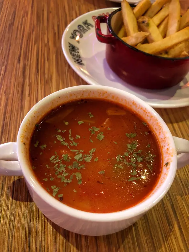 轉咗嚟北角返工之後,帶飯多咗,搵食少咗🤣,難得星期五,同幾個同事係公司附近食咗呢間newyork diner~~lunch set around $80-$100 偶爾食貴少少都無所謂啦🤭.#海蜆配辣肉腸忌廉牛油汁意粉$73 跟餐湯:#甘筍湯 & 餐飲(有Honry lemonade !)首先辣肉腸係碎粒上同啲意粉炒埋一齊都好驚喜,食意粉嘅同時仲可以食到辣肉腸,味道唔會太咸,帶帶牛油香味,海蜆都大粒肥美,overall 好滿意!…查看更多