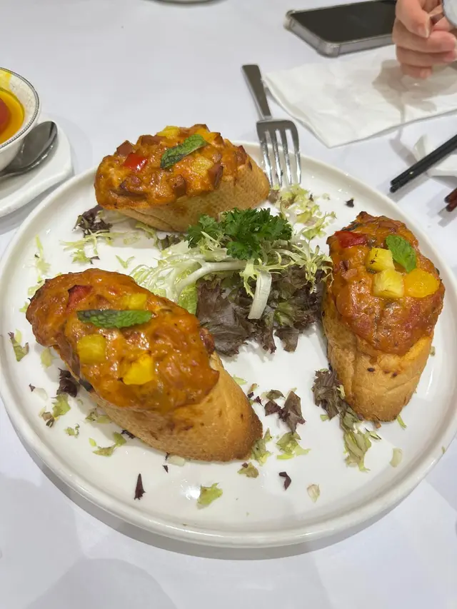 一直幫襯開素之樂嘅午市點心,無試過私房菜,趁住中秋做節就會一會佢。🔸🔹🔸🔹🔸🔹🔸🔹🔸🔹🔸🔹🔸🔹Dinner Menu ($328 / person, 兩位起)(精選拼盤) 酥香素魚柳、涼拌篙筍、椒鹽蓮藕、涼拌彩蔬|⭐⭐⭐⭐酥香素魚柳 - 素鰻魚炸得酥脆,上面沾左沙律醬,增添唔少滋味。涼拌篙筍 - 篙筍水嫩多汁,麻醬加埋芝麻粒,令到篙筍食落唔寡。椒鹽蓮藕 - 椒鹽配所有野都無得輸!涼拌彩蔬 - 普通冷盤,無乜特別。(湯品) 茶樹菇燉湯|⭐⭐⭐⭐好足料! 濃濃菌🍄🟫味!蘆筍三文魚米紙卷|⭐⭐⭐估計蘆筍唔當造,變左時蔬三文魚米紙卷,d菜好新鮮,好fresh~清宮彩虹🌈卷|⭐⭐⭐⭐⭐用腐皮卷住紅蘿蔔絲🥕、篙筍絲同木耳絲,咬落去索索聲,芡汁增添左腐皮個滑嫩程度,終於見到一道菜係有少少特色,有食私房菜嘅感覺啦!一葉酥|⭐⭐⭐即係素春卷🫔,包D料唔多,加上點左葡汁,D汁搶晒D味,唔太食得出入面係咩餡。咕嚕酸辣雞|⭐⭐⭐⭐食左D先發覺唔記得影相😂 菠蘿🍍同素肉比例好好,大概1:3。食到呢度已經開始有D飽嘅感覺,呢個時候上一道酸酸甜甜嘅菜式去解膩,非常好。意式焗法包|⭐⭐⭐⭐⭐好大件,好抵食! 但真係開始飽,輕輕淺嘗一下試左個味就算。完全就係夏威夷風情🍕感覺,又係酸酸地甜甜地,幫手解一解膩。金湯雜菌蕃茄盅|⭐⭐⭐原個蕃茄🍅釀滿滿嘅海鮮菇🍄🟫,配南瓜湯,味道不過不失。SOD酵素|⭐⭐⭐⭐⭐酸酸地,唔識形容個味道,功能性一流👍🏻! 服務員話飲佢會幫手消化,飲左佢真係無咁滯,化到d胃氣!日式燉飯|⭐⭐⭐⭐⭐個樣望落好普通,本來打算原個打包就算,但服務員強烈建議我地試少少先打包。一𢳂落去,原來內有乾坤,燉飯藏左喺入面,有D蕃茄茸🍅、素肉醬等濕濕地嘅食材,配埋外面層白飯🍚,感覺啱啱好!鮮磨合桃露|⭐⭐⭐奶味重左D,有D粉粉嘅感覺,似加左奶粉落去煮合桃露而唔係用鮮奶,唔夠滑。🔸🔹🔸🔹🔸🔹🔸🔹🔸🔹🔸🔹🔸🔹整體感覺:食物以煎炸物為主,味道中上,惜創意同手工略為欠奉,唔太顯現到私房菜嘅特色;但餐廳以價錢同份量搭救,只係本人重質多過重量😆。服務員態度殷勤。…查看更多
