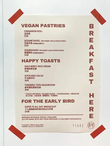 素年太古城最近新加咗早餐時段 (大拍手)供應 Vegan Pastry 同輕盈早餐到訪呢日朝早陽光充沛店面樹影婆娑特別靚特別有詩意太古店紅白裝潢簡潔清爽又帶點活潑感品牌最近仲同 Rockit 合作蘋果圖案同店面完全無違和感之餘仲有聯乘推廣送贈 Rockit 可愛小蘋果攞返去當做健康小茶點剛好🔖 香草磨菇薑黃豆腐Bagel坊間少見嘅配搭磨菇切大大粒非常有口感加咗薑黃嘅嘅豆腐望落真係好似炒蛋呢芝麻Bagel外亦可以配Sourdough、Brioche🔖 Latte🔖 蘋果山楂洛神花茶❣️早餐為實驗性質供應安排以店家公佈為準