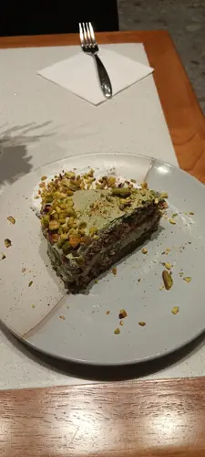 是日下午茶,簡簡單單第一次係素年光顧便有很大驚喜由於下午茶時段過咗所以我決定食一件開心果蛋糕冇諗過畫碟咁靚夾埋用黃原膠粉做蛋嘅感覺佢打到個開心 果碎做醬好特別咁加上少量開工開心果碎滿足咗呢個鍾意食開心果甜品嘅為食貓