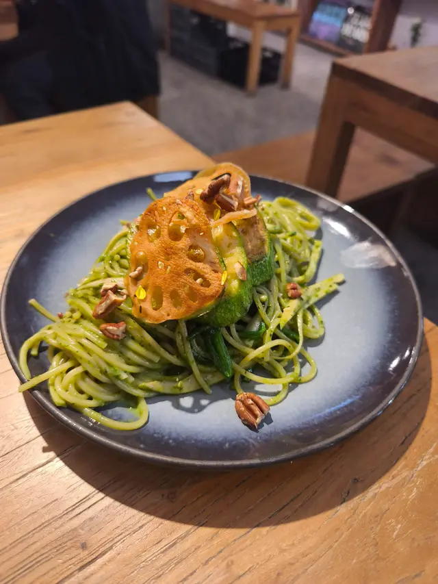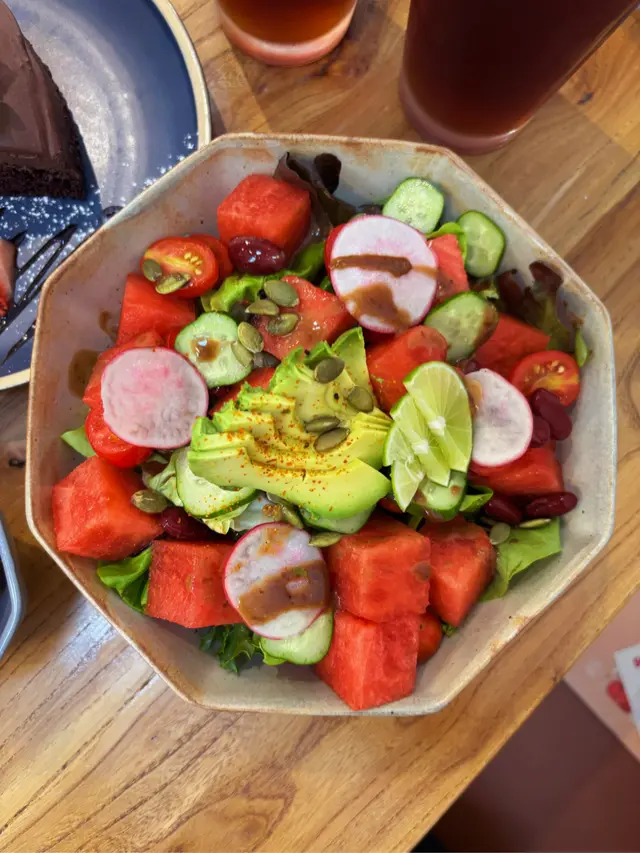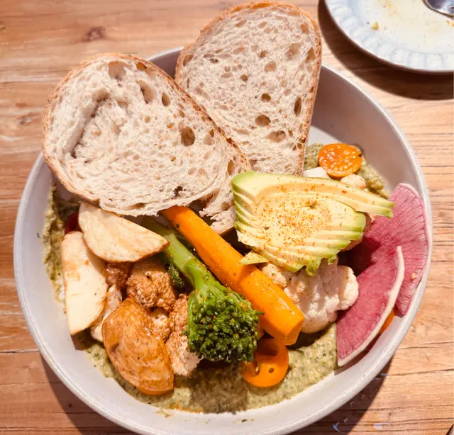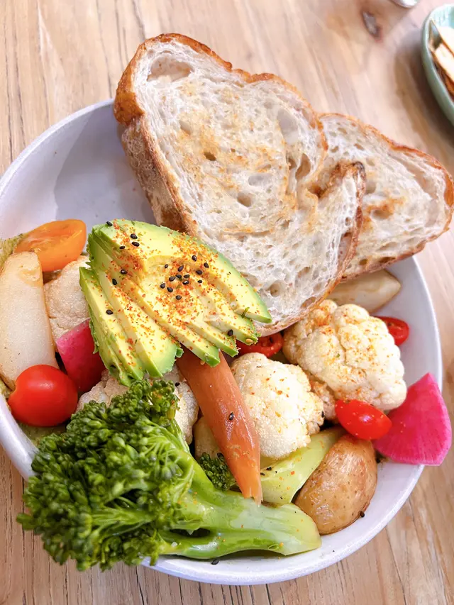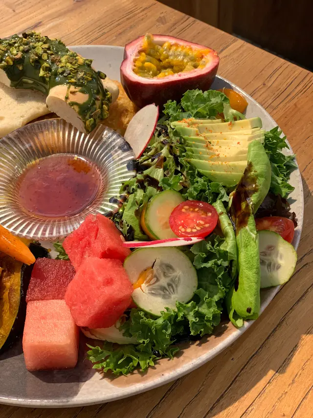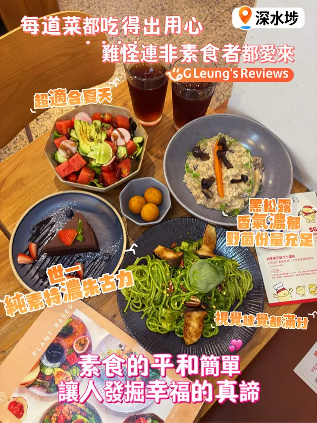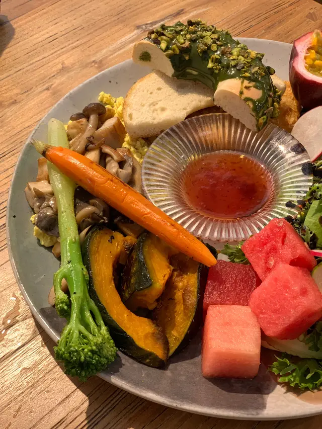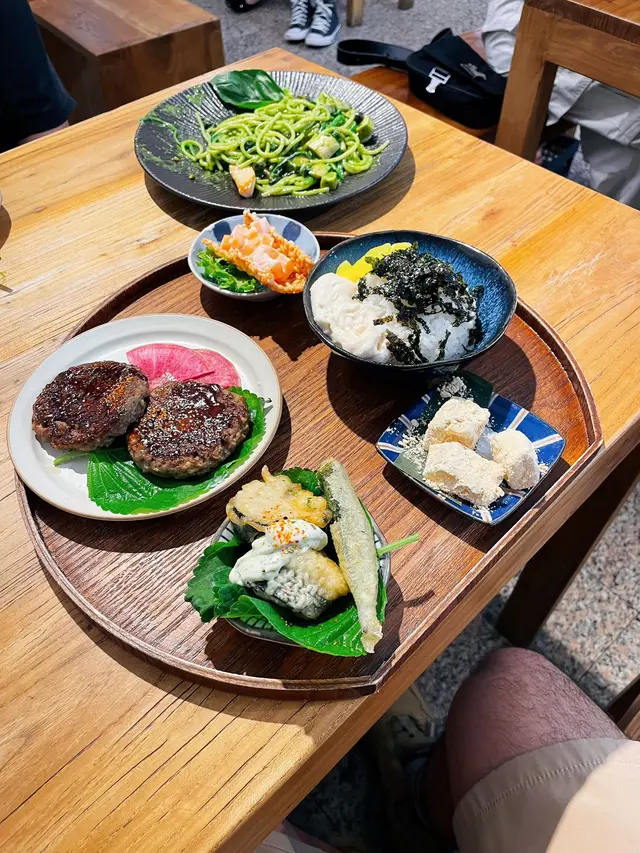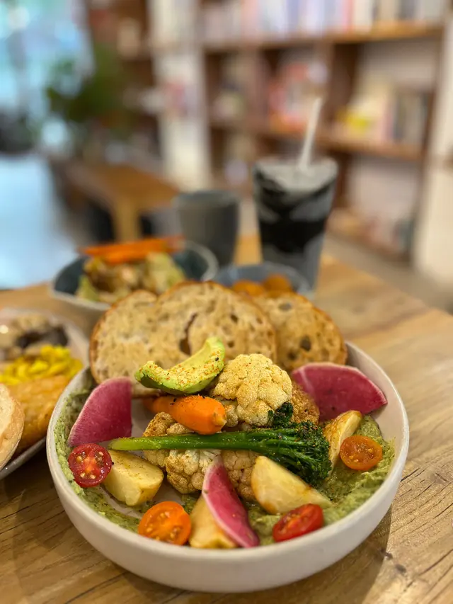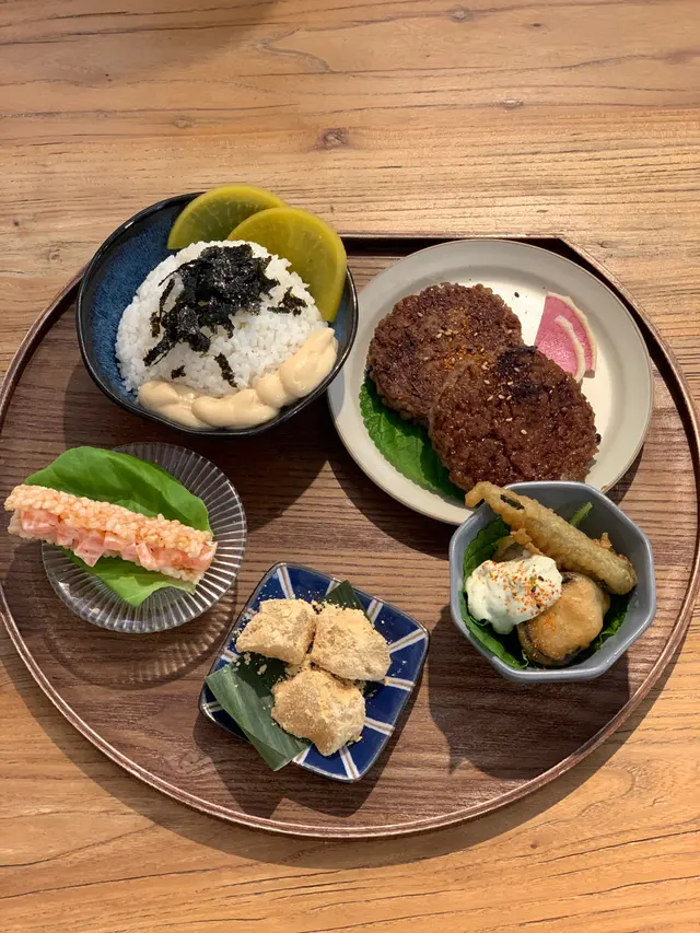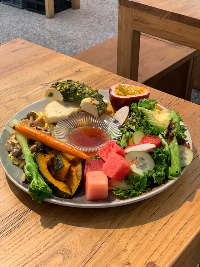 和素食朋友午飯聚,來了汝洲街的素年吃午餐。一入門口,已感到很重的文青feel。坐下後,便叫了日式醬燒蓮藕漢堡扒三文魚他他定食,及十二種蔬菜開心果醬貝果全日早餐。飲品叫了蘋果山楂康仙花洛神花茶,及特飲夏日熱辣辣。食材精選有機本地菜,新鮮清新,加上用了無蛋奶自家調配醬汁,及原來連炒蛋也是全素,(炒蛋是由豆腐做的),對全素食者來說,可以食得安心。~ 日式醬燒蓮藕漢堡扒三文魚他他定食:定食有自家製日式不可能蓮藕漢堡扒,賣相及口感都象真度高。三文魚他他米餅外表卜卜脆,內裏的三文魚爽口。野菜天婦羅食材清甜,外皮香脆。加上白飯及豆乳味噌醬,還有甜品,令整份定食不但上枱時吸睛,更是非常豐富呢!~ 十二種蔬菜開心果醬貝果全日早餐:全日早餐的十二種蔬菜新鮮,營養豐富,黑醋沙律醬酸咪咪,令人開胃。開心果醬味道濃郁,貝果煙靱。炒素蛋更有驚喜,原來是用豆腐炒的,全素者食得安心呢!~ 蘋果山楂康仙花洛神花茶:入口清新芳香,養顏美容,生津抗養化。~ 特飲夏日熱辣辣:上枱時色彩繽紛,消暑解渴,份量有西瓜、薄荷及燕麥奶,是視覺及味覺的最高享受呢!素年不但位置寛敞,坐得舒服,加上店員親切,下次一定再來。…查看更多