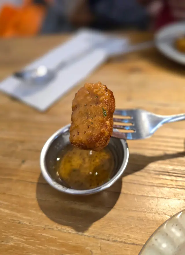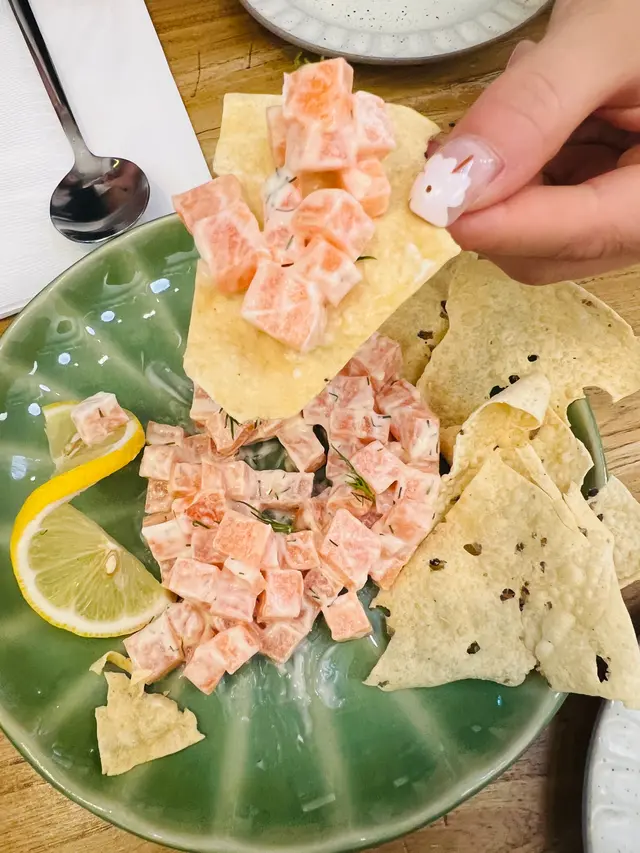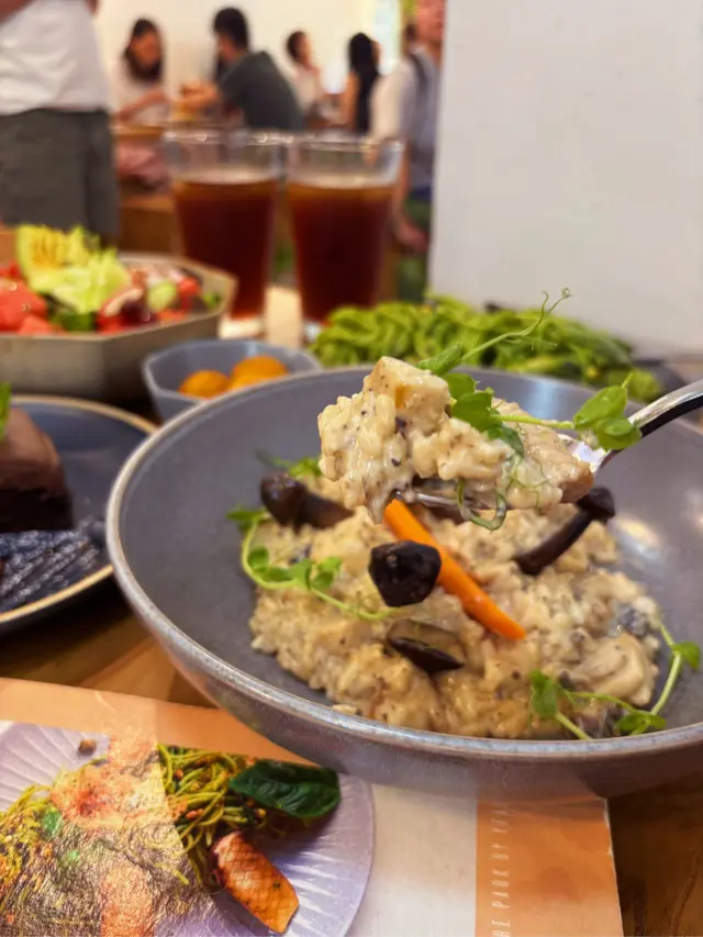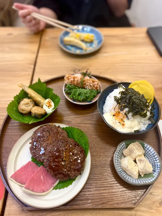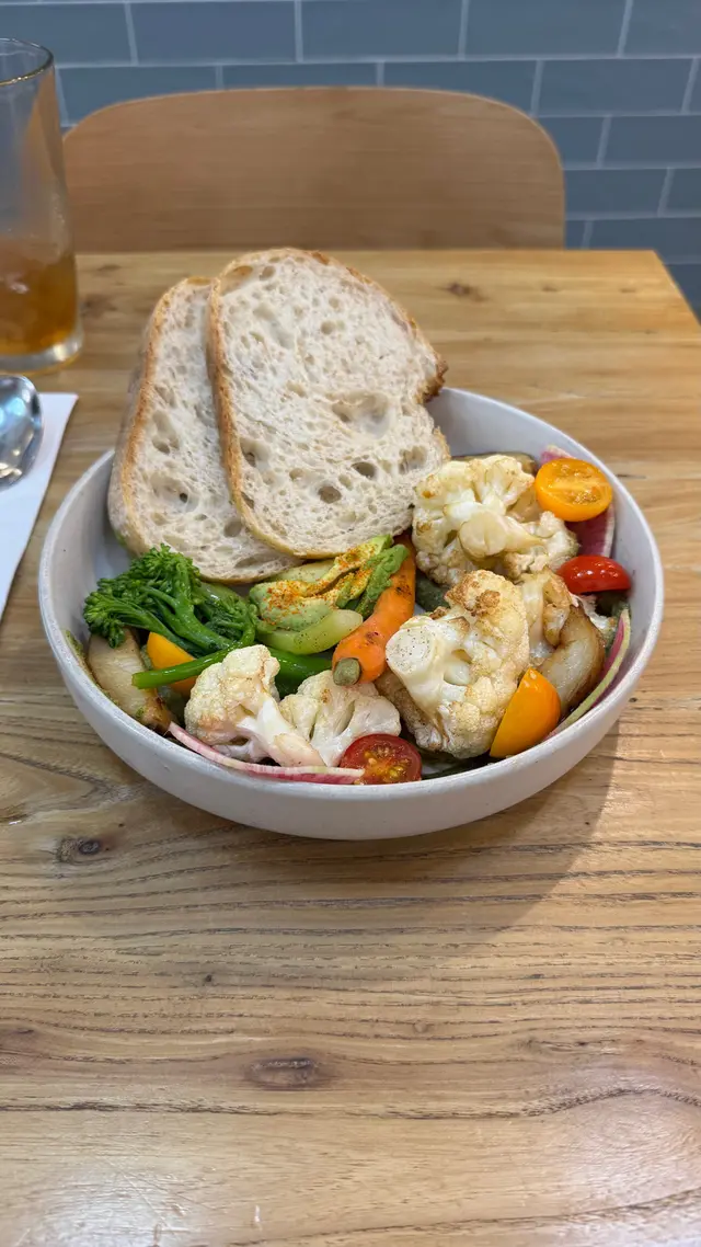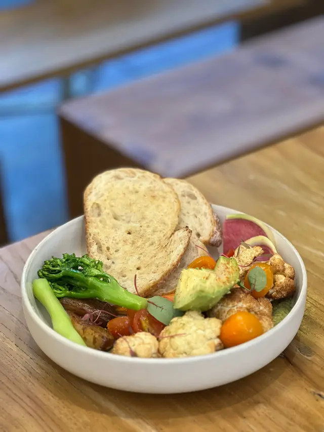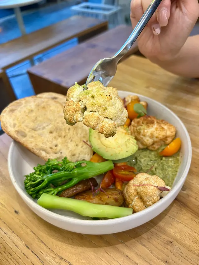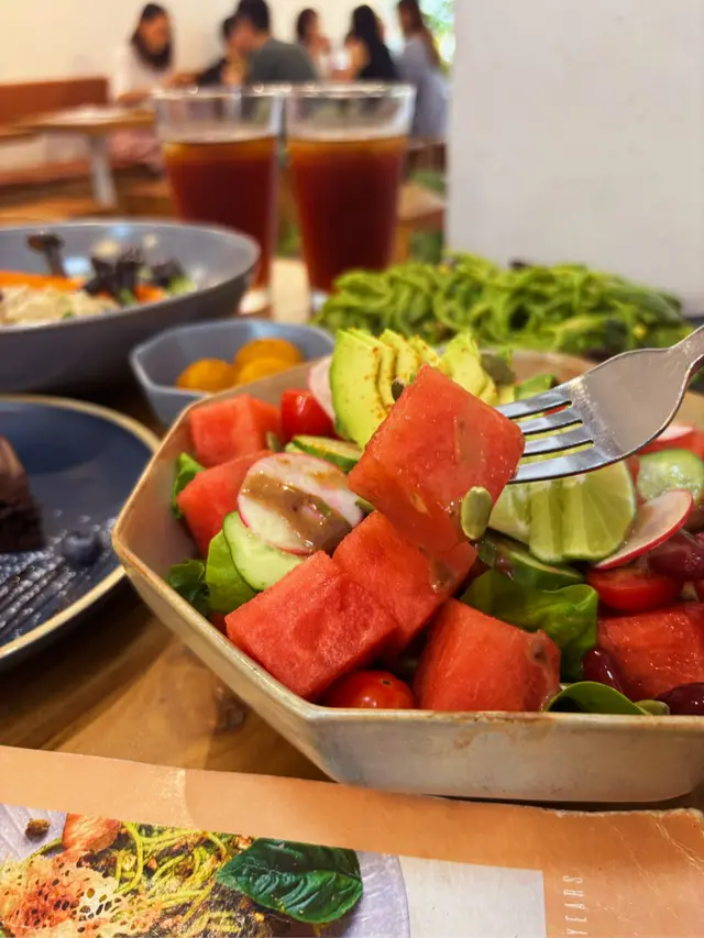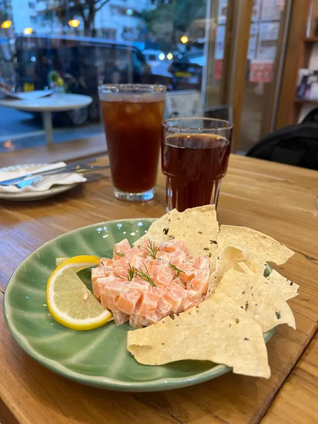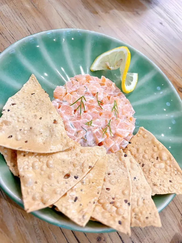 和素食朋友午飯聚,來了汝洲街的素年吃午餐。一入門口,已感到很重的文青feel。坐下後,便叫了日式醬燒蓮藕漢堡扒三文魚他他定食,及十二種蔬菜開心果醬貝果全日早餐。飲品叫了蘋果山楂康仙花洛神花茶,及特飲夏日熱辣辣。食材精選有機本地菜,新鮮清新,加上用了無蛋奶自家調配醬汁,及原來連炒蛋也是全素,(炒蛋是由豆腐做的),對全素食者來說,可以食得安心。~ 日式醬燒蓮藕漢堡扒三文魚他他定食:定食有自家製日式不可能蓮藕漢堡扒,賣相及口感都象真度高。三文魚他他米餅外表卜卜脆,內裏的三文魚爽口。野菜天婦羅食材清甜,外皮香脆。加上白飯及豆乳味噌醬,還有甜品,令整份定食不但上枱時吸睛,更是非常豐富呢!~ 十二種蔬菜開心果醬貝果全日早餐:全日早餐的十二種蔬菜新鮮,營養豐富,黑醋沙律醬酸咪咪,令人開胃。開心果醬味道濃郁,貝果煙靱。炒素蛋更有驚喜,原來是用豆腐炒的,全素者食得安心呢!~ 蘋果山楂康仙花洛神花茶:入口清新芳香,養顏美容,生津抗養化。~ 特飲夏日熱辣辣:上枱時色彩繽紛,消暑解渴,份量有西瓜、薄荷及燕麥奶,是視覺及味覺的最高享受呢!素年不但位置寛敞,坐得舒服,加上店員親切,下次一定再來。…查看更多