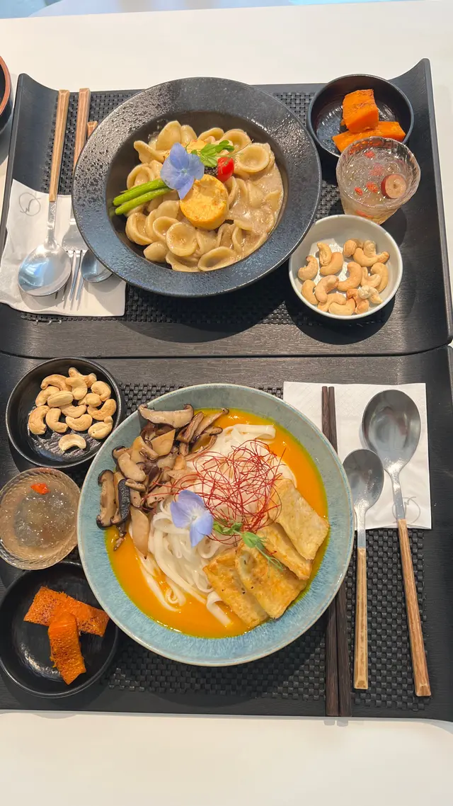 素某 📍:香港灣仔謝斐道254-272號杜智臺地下9-10號舖🚗:灣仔地鐵A1出口 步行8分鐘📞:+852 52318787💲:~HKD300/head for dinnerFood quality✔️:自選晚餐一人前、晚餐沙律、餐湯、香草素雞.野菜.山藥慕絲、松露帶子貓耳朵粉、椰香琥珀雪燕👌🏼:嫩芽.草本拼配、展開.草本拼配、天婦羅拼盤、席前小食總結:😋暫時係我食過最好食嘅素食餐廳 比起食物 我更覺得整個體驗好好 餐廳走新派素菜路線 除咗食物 仲會舉行心靈療癒工作坊 一上枱餐牌就話餐桌都係嚟自颱風倒下嘅樹木🌲由環境 食物 茶品都好統一地走療癒理念😋餐廳獨孤一味淨係得晚宴 $298一人前包小食 沙律🥗湯品 天婦羅 主食就五揀一 甜品就分四季或素蛋糕 另外拼配茶 好飽肚 由理念到執行都一絕 良好嘅體驗😋每一道都好有心機烹調 菜式每日都會轉 今日嘅小食係青瓜配紅椒絲 落咗醋同芝麻 酸酸微微幾開胃🤤沙律有驚喜 落咗藜麥同素鬆多咗嚼頭 醬汁清新😋天婦羅🍤拼梅子粉好出色 冇咁膩 茄子最出色 炸粉唔厚夠脆 裏層仲食到茄子一絲絲口感 其餘冬菇 南瓜就正常發揮😋今日嘅湯品係中湯 蓮藕銀耳花生🥜湯 雖然落咗紅蘿蔔 但整碗湯冇炆到一絲絲 令碗湯清啲亦易入口啲 係碗好飲嘅中湯😋主菜係五款中選咗最多人揀嘅香草素雞.野菜.山藥慕絲同松露帶子貓耳朵粉 前者素雞略韌 但山藥慕絲物如其名 順滑嘅口感 伴碟嘅蘑菇🍄🟫好淋身入味 松露帶子貓耳朵👂嘅松露味濃郁 素帶子食落似魚蛋 貓耳朵又夠掛汁 好食😋甜品有四款代表四季嘅甜品 揀咗唯一唔需要加錢嘅冬季代表椰香琥珀雪燕 呢個真係超適🈴女士 好清潤 仲有紅棗夠哂滋補🤔套餐包草本拼配茶 都係四款擇一 我就聽店員推薦揀咗兩款口味較淡嘅嫩芽同展開 前者嘅風味係單欉 歐薄荷 香芧同桂枝 展開就黃大茶 樁葉花椒 松針同木姜子 兩種都係淡得嚟又有茶香 茶味又唔會過濃適宜喺夜晚🎑飲😨張枱太細張 唔夠位放 建議一碟食完再上另一碟觀感會好啲 另外中間位置枱同枱嘅隔離太近 有點搭枱感覺🙊…查看更多