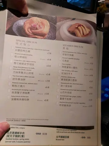 中環一帶高級中菜選擇多,紫玉蘭自開業以來一直穩坐市場,數次到訪,地點方便是其優勢;至於菜式與服務,則一般此行八人午餐,選了數道冷盤、熱炒、主食與甜品,並配上三款茗茶,種類頗為齊全。前菜中,以醉雞最為討好,雞肉冰涼,皮滑肉嫩,酒香分寸得宜。紅蜇頭爽口,惟蔥油略油,煙燻初生蛋則徒有其表,未見煙香;黑魚子添色不少,味道卻平平。四喜烤麩好食主菜方面,烤鴨為本餐焦點。紫玉蘭所用鴨隻肥瘦合宜,果木燒製,皮脆肉嫩,鴨腿以錫紙包裹,食用方便。搭配配料中,除傳統蔥段、青瓜、甜麵醬外,另加牛油果醬,意圖求變,成效見仁見智。然整體鴨身火候尚可,味道屬中上。宮保蝦球值得一提,蝦仁碩大、肉質爽彈,調味拿捏得宜,鹹香微辣,恰到好處。必叫的響鈴黃魚卷亦出乎意料地合口,外層炸得香脆,魚茸無腥,工整細緻。水煮牛肉則相對失色,辣度不足,香氣未發,牛肉雖嫩,但湯底寡淡。蜜汁火腿過甜,略嫌乾硬。金華火腿燉津白與小豆苗上湯兩者湯底清淡,略顯單薄,僅屬襯托之作炒飯表現理想,帶子落得足,米飯乾身不油,炒功見火候。甜品方面,高力豆沙香蕉為少見之作,皮脆內綿,豆沙香甜,算是收尾佳選;豆沙鍋餅厚重欠層次,口感滯膩。棗泥糕與櫻枝露皆無甚特別,作陪襯即可。茶品三款:人參烏龍、明前龍井與陳年普洱,各自分明。尤以普洱為佳,茶味醇厚,佐膩解滯。服務人員不乏禮貌,惟應對生硬。中午時段場內逼仄且略嘈,氣氛較倉促,談話不便。…查看更多