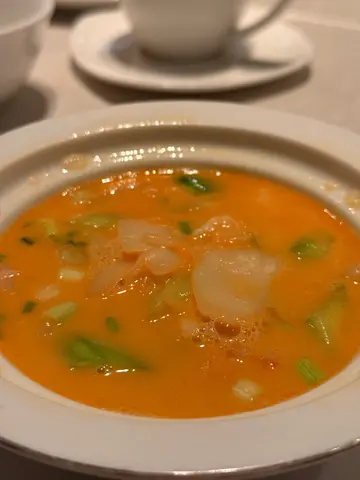 又是和摯愛親朋共聚晚餐,嚐味😋、聊天💦、愉悅🫶的一晚🌃👇牛油果龍蝦🦞沙律,小龍蝦揭開晚宴的序幕,漂亮的擺盤造型,當然要拍個靚照👇龍蝦海皇羹🍵,超足料,內有龍蝦肉、花膠條及配搭得宜的食材,無論口感和味道都讓人喜愛👇金絲草莓🍓龍蝦球,好味到不得了,讚不絕口,外層香脆,蝦膠彈牙,並包裹着爽口的龍蝦肉,加埋草莓果肉及醒胃的草莓醬汁,一切都是完美的配搭🤩👇瑤柱蛋白蒸東星斑球🐟,斑球嫩,蛋白滑溜👇東星斑海鮮福袋👛,精緻的小福袋裏有星斑肉,蝦粒及其他食材👇澳洲龍蝦海鮮泡飯🍚,除了有爽嫩的龍蝦肉,還有帶子及菜粒,湯又鮮,脆米也是亮點,當泡飯遇上脆米,兩者相互輝映下,呈現了無懈可擊的海鮮泡飯🤩👇凍椰汁🥥雪燕、桃膠紅棗凍糕,滿滿的雪燕落在香濃的椰汁,清甜,而紅棗凍糕就清涼…查看更多