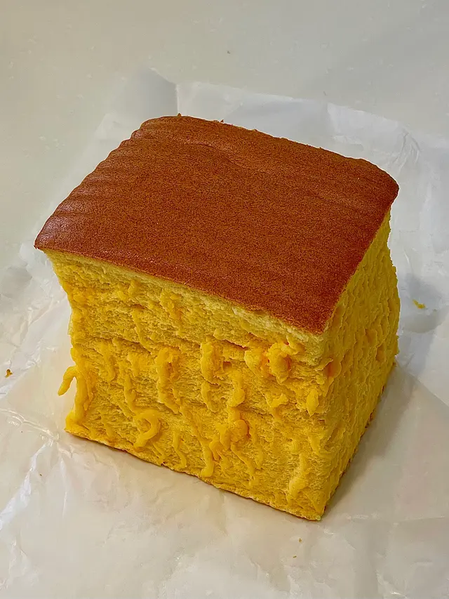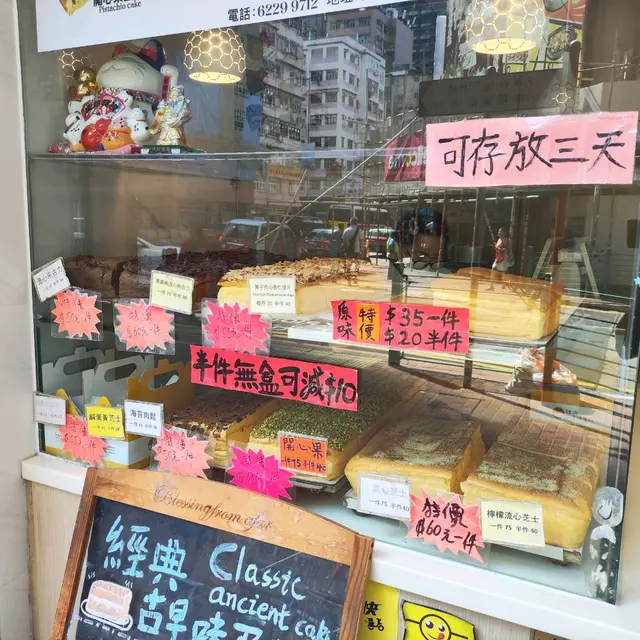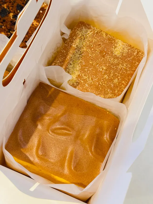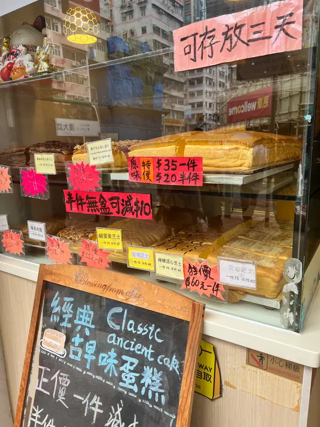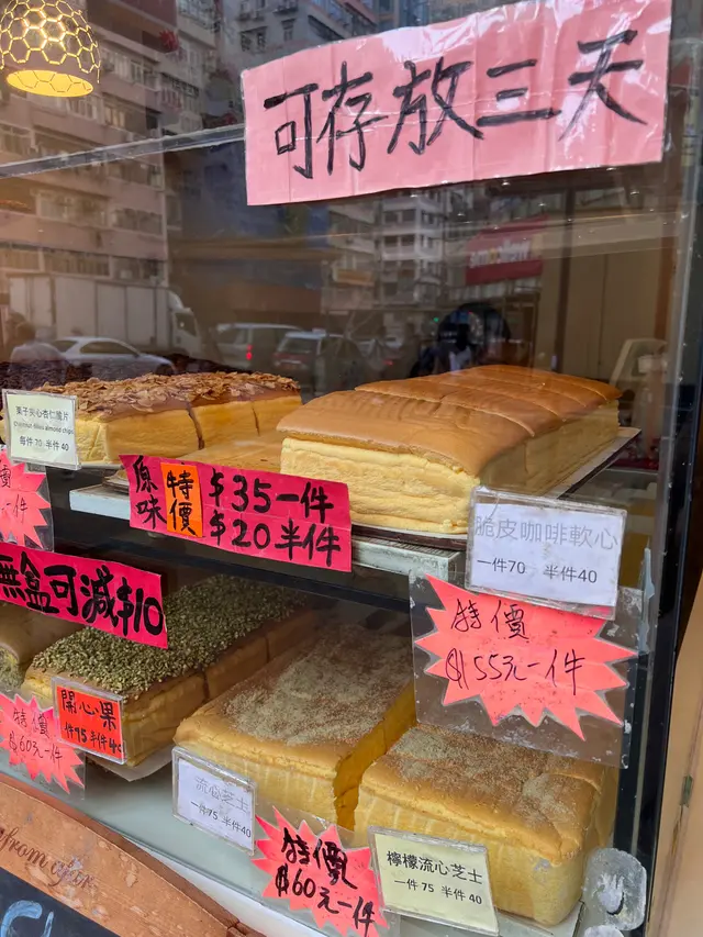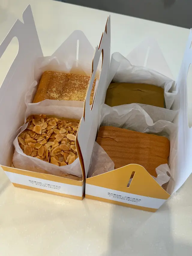 每次經過呢啲古早味蛋糕店都俾佢嘅香味吸引呢間口味款式甚多,鹹甜兼具買咗四款口味返去同屋企人&朋友分享😋▶️ 脆皮咖啡軟心 ($40/半件)聞到好香咖啡味☕️脆皮應該落咗海鹽,食落鹹鹹地中間有層咖啡忌廉令蛋糕冇咁齋蛋糕本身帶少少苦味,減低甜度個人最鍾意呢款口味,亦係四款中最特別一款🤎▶️ 流心朱古力 ($38/半件)真係有流心朱古力🍫有啲似心太軟面頭仲有粒粒朱古力,濃濃朱古力味食落冇預期中咁甜咁漏👍🏻第二好食!▶️ 海菭肉鬆 ($38/半件)面頭大量海苔肉鬆,食落鹹香不過如果肉鬆鬆脆啲會好食啲鍾意佢冇落沙律醬,唔似肉鬆小貝咁油膩🤭中間有層鹹蛋黃,但味道唔出食完甜口味,食返個鹹嘅中和下▶️ 原味($20/半件)試原始口味就可以試到蛋糕本身功力蛋味幾香🐣質感鬆軟綿密原味都唔會太dry,比一般海綿蛋糕有質感連個頂都唔乾硬,證明本身蛋糕底唔錯🍰-鍾意佢古早味蛋糕質感,輕身幼細又有回彈力感覺仲好light,食多幾件都仲得😋推介「脆皮咖啡」同「流心朱古力」蛋糕最多可放三日,雪凍食係另一個口感,亦可以焗返熱嚟食店員服務態度幾好,包裝盒設計易拎性價比極高,半件可以切成6片,適合多人分享❤️試多幾款味道…查看更多