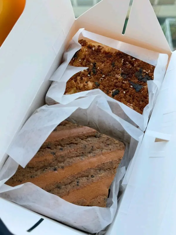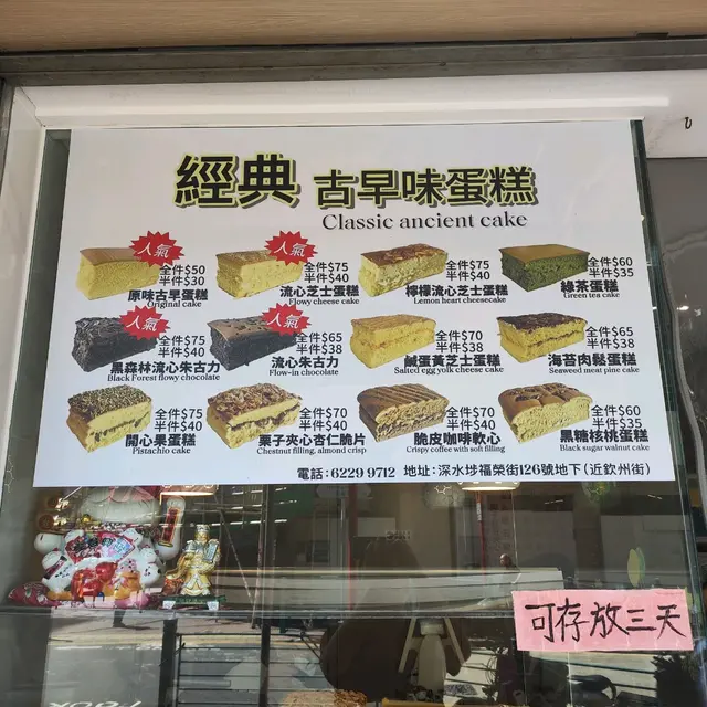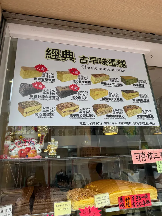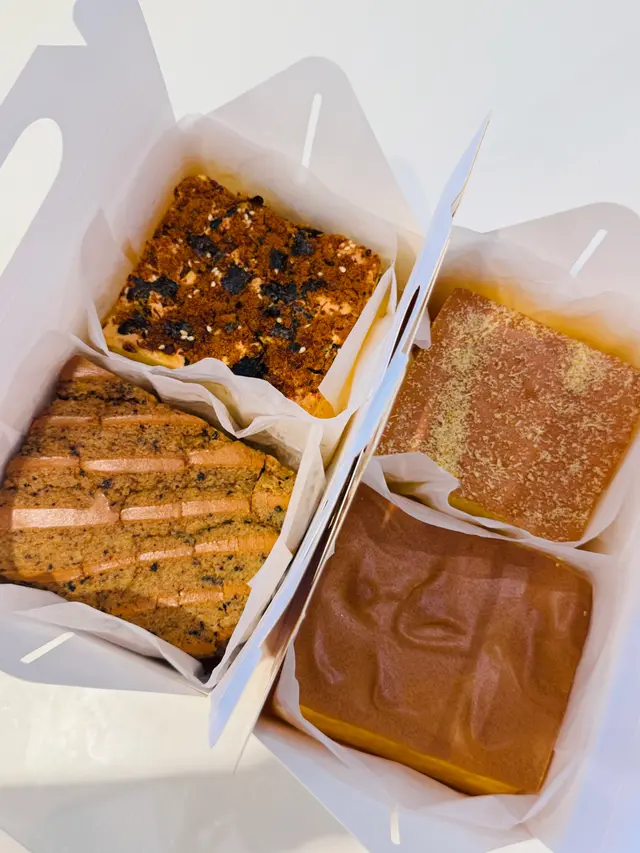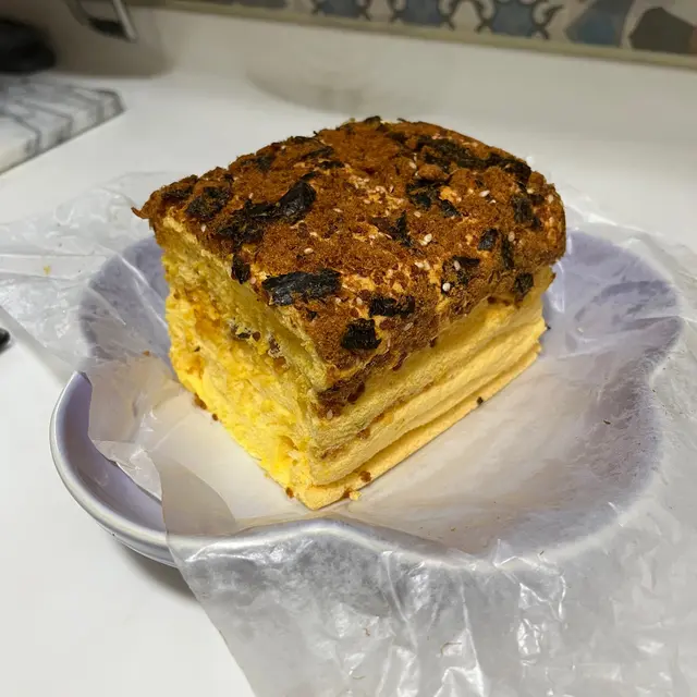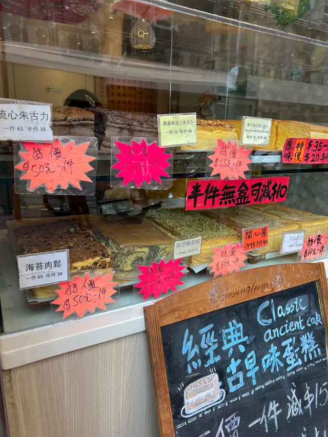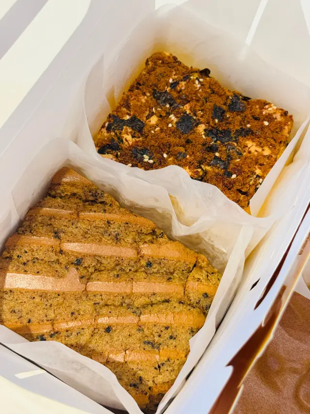 每次經過呢啲古早味蛋糕店都俾佢嘅香味吸引呢間口味款式甚多,鹹甜兼具買咗四款口味返去同屋企人&朋友分享😋▶️ 脆皮咖啡軟心 ($40/半件)聞到好香咖啡味☕️脆皮應該落咗海鹽,食落鹹鹹地中間有層咖啡忌廉令蛋糕冇咁齋蛋糕本身帶少少苦味,減低甜度個人最鍾意呢款口味,亦係四款中最特別一款🤎▶️ 流心朱古力 ($38/半件)真係有流心朱古力🍫有啲似心太軟面頭仲有粒粒朱古力,濃濃朱古力味食落冇預期中咁甜咁漏👍🏻第二好食!▶️ 海菭肉鬆 ($38/半件)面頭大量海苔肉鬆,食落鹹香不過如果肉鬆鬆脆啲會好食啲鍾意佢冇落沙律醬,唔似肉鬆小貝咁油膩🤭中間有層鹹蛋黃,但味道唔出食完甜口味,食返個鹹嘅中和下▶️ 原味($20/半件)試原始口味就可以試到蛋糕本身功力蛋味幾香🐣質感鬆軟綿密原味都唔會太dry,比一般海綿蛋糕有質感連個頂都唔乾硬,證明本身蛋糕底唔錯🍰-鍾意佢古早味蛋糕質感,輕身幼細又有回彈力感覺仲好light,食多幾件都仲得😋推介「脆皮咖啡」同「流心朱古力」蛋糕最多可放三日,雪凍食係另一個口感,亦可以焗返熱嚟食店員服務態度幾好,包裝盒設計易拎性價比極高,半件可以切成6片,適合多人分享❤️試多幾款味道…查看更多