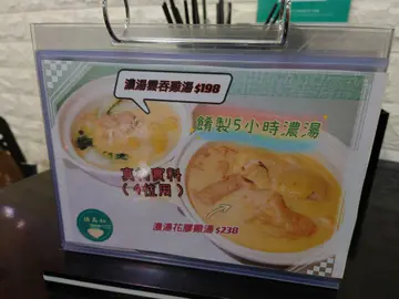 餐廳主打花膠濃雞湯,有多款食法及麵底可供選擇,另外亦有炒粉麵飯、小菜、時令海鮮、小食及飲品等供應。