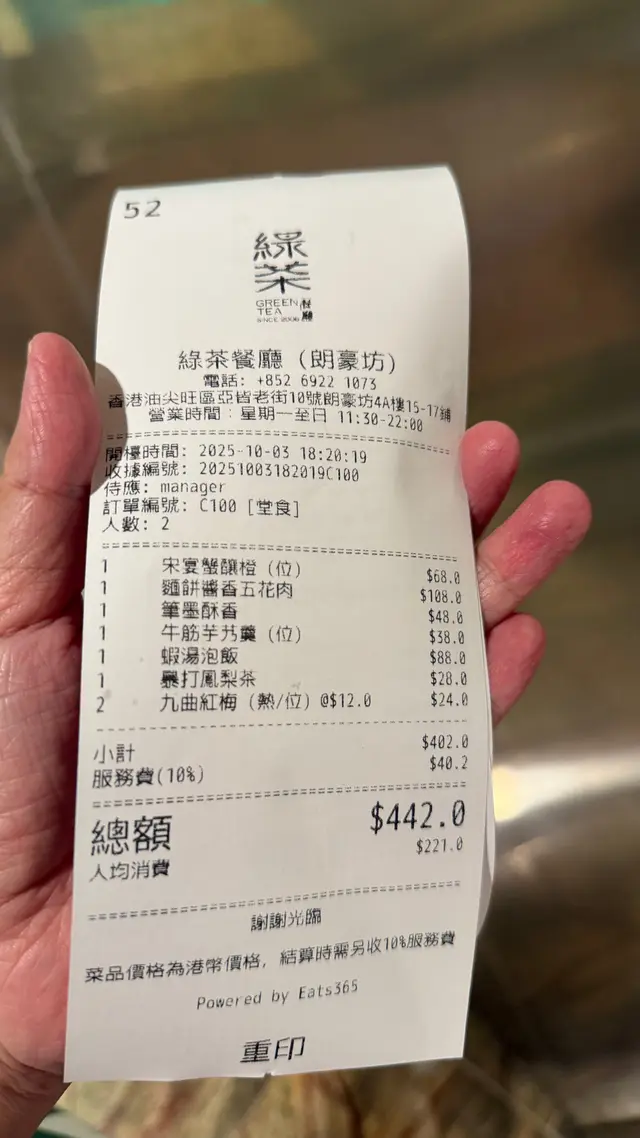 綠茶餐廳 (朗豪坊) (旺角) 網上訂座享低至78折優惠兼賺Rice Dollars 網址: https://s.openrice.com/QrbS0epOF00 地址: 香港旺角亞皆老街8號朗豪坊4A樓15-17號舖 電話: +852 69221073