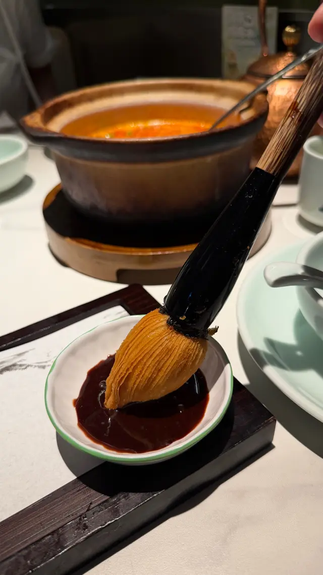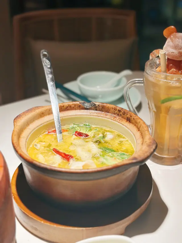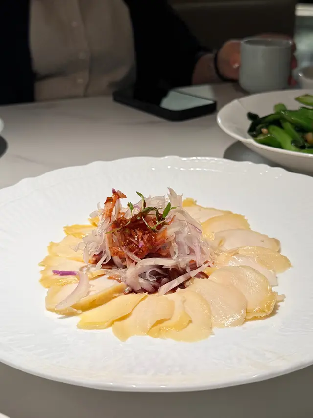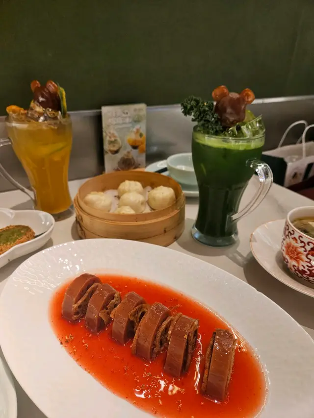 之前响大陸食過,念念不忘……尋晚同老細又去咗「綠茶餐廳」朗豪坊新分店,真係幾有保證㗎!✨一踏入餐廳,就覺得自己好似去咗杭州西湖咁。成間店用裝修幾有心思,俾人一種好清幽、舒服嘅感覺。雖然朗豪坊本身係旺角呢個咁旺嘅地方,但餐廳入面又真係幾 relax,唔會覺得好嘈雜,幾適合同朋友慢慢食、慢慢傾計。我哋兩個人叫咗幾樣嘢食,整體都幾滿意:🚤· 翠舟蝦劃:蝦肉爽口彈牙,釀响秋葵上,個名又得意,擺盤幾精緻,味道清鮮,幾適合夏天食。🦐· 粉絲裹蝦:呢個菜係我地必食!粉絲索晒啲鮮味汁醬,同蝦一齊食好夾,蝦肉超爽口,送飯一流。🥜· 西湖藕韻:口感爽脆,味道清甜,作為前菜或者清口都唔錯。🥦· 香鍋花菜:惹味之選,鑊氣夠,微辣香口,菜花依然保持到口感。🥓· 麵餅醬香五花肉:五花肉炆得夠淋,醬汁濃郁,用麵餅夾住食可以減低油膩感。🛕· 西湖雷峰塔:個名好有詩意,其實係一款造型似雷峰塔嘅奶凍,配上綠色豆蓉汁,香滑惹味。🍹· 龍井檸檬茶:食完濃味嘢飲返杯,清新解膩,龍井茶香同檸檬好夾,隻熊仔茶冰飲到尾都未溶晒😅😝。👍🏻今日雖然幾滿座,但店員都算快手,態度幾好。落單、上菜速度合理,換碟、加水都幾主動。店員話原來菜單係米芝蓮星級主廚俞斌有份design。整體來講,綠茶朗豪坊店無論環境、食物定服務都幾好。價錢方面,人均大約$250左右,以呢個環境同食物質素來講,算好合理。💡 小貼士餐廳個新App不時會有會員優惠券同折扣,落單前記得睇睇啦!🥰…查看更多