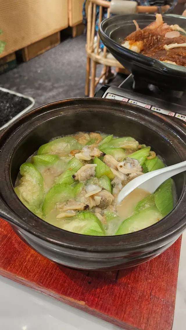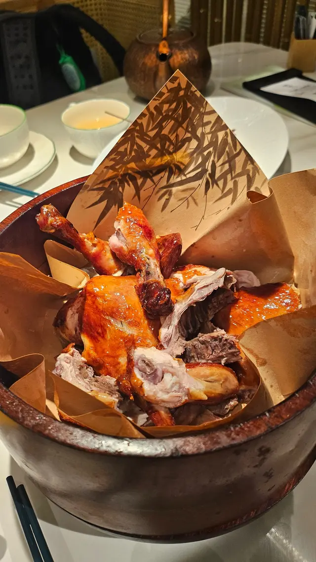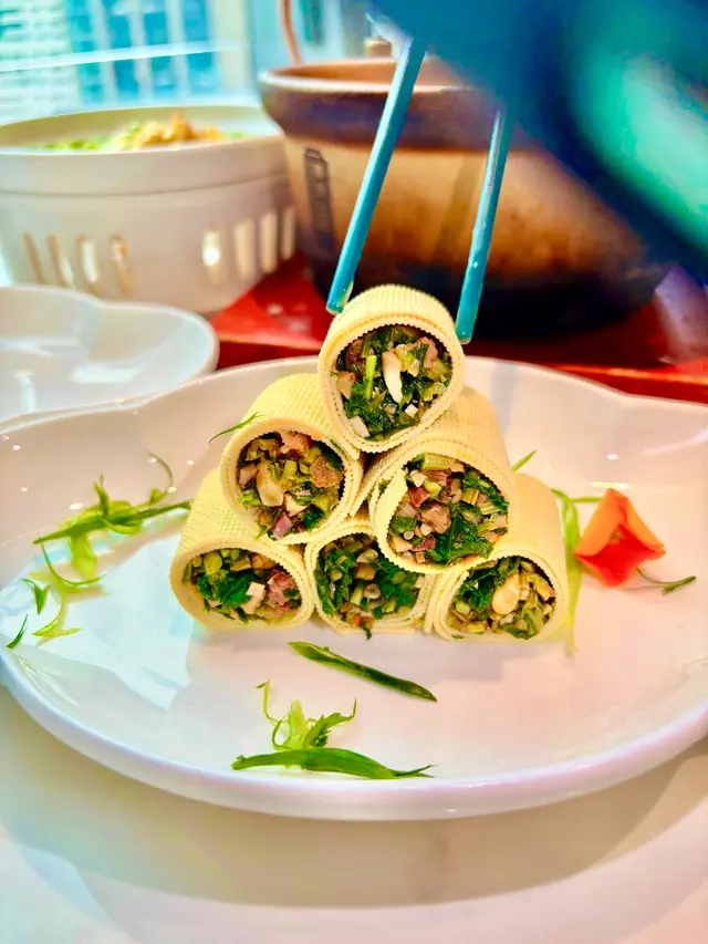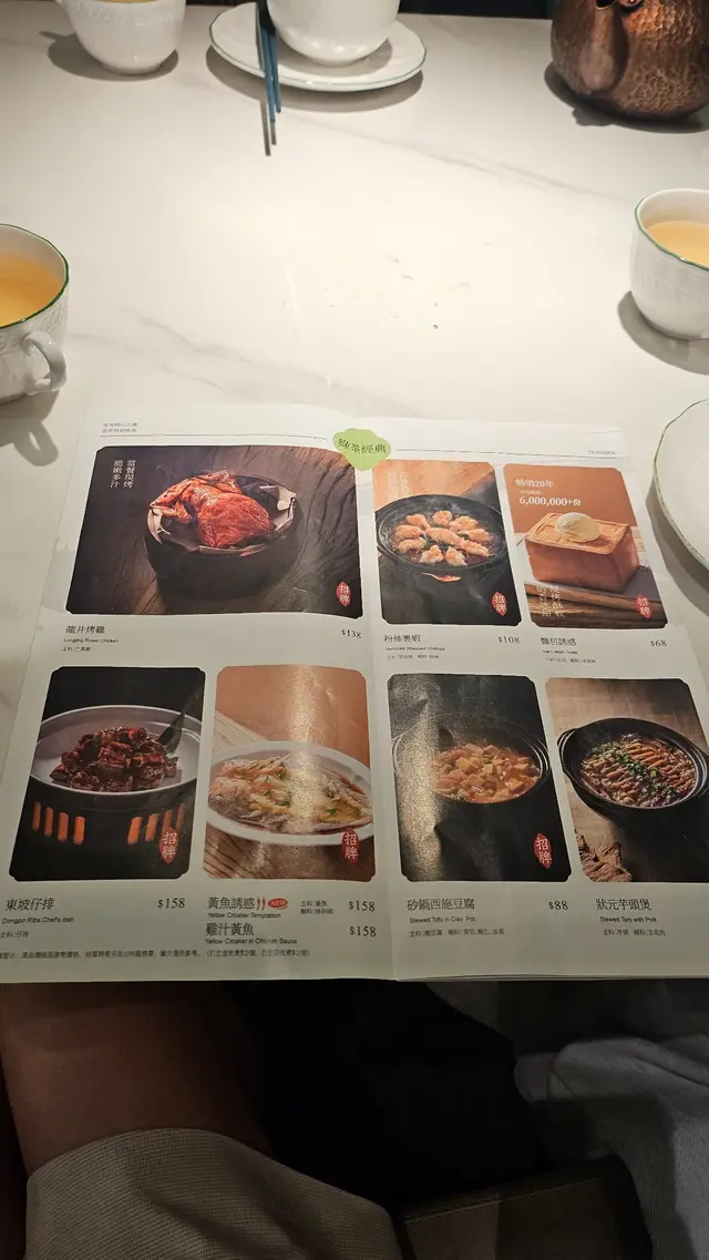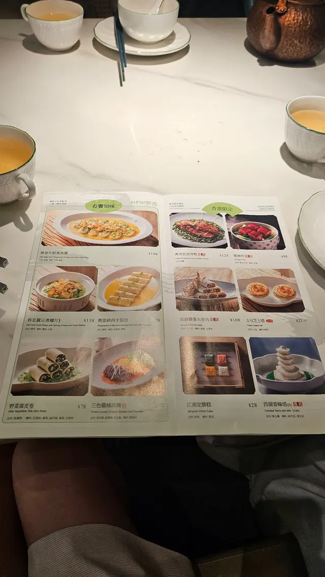 來到位於銅鑼灣希慎廣場的綠茶餐廳晚飯,星期六的晚飯時段有不少人候位。如果超過2人walk in,建議還是先預訂座位。2人枱的入座速度很快,而我們一行3人,等位至少30分鐘。餐廳內以竹林設計為主題,燈光柔和,座位寬闊,感覺舒適。餐牌內容選擇豐富,還有香港限定的菜式。餐牌圖文並茂的介紹每一道菜,只是用的紙張是薄薄的宣傳小冊子用紙,不是堅實的一本餐牌。茗茶 ($12/位) 不是一般酒樓的普洱、香片,而是九曲紅梅,味道醇厚,微微甘甜。宋嫂魚羹是浙江杭州的一道傳統名菜,來到浙菜餐廳,少不了一碗宋嫂魚羹。材料包含魚肉、金菇、香菇及木耳,湯羹呈琉璃獎,芡的比例恰好,湯羹不會厚如粉漿,亦不會太過稀薄水漾。魚肉鮮嫩爽滑,配上口感爽脆的木耳及柔軟的菇,口感豐富。粉絲裹蝦,放在Gas爐上即時烹煮,約5分鐘後可享用。蝦仁份量充足,口感彈牙,粉絲吸滿蒜香十足的醬油,整體夠鑊氣又惹味。麵餅醬香五花肉的擺盤賣相不錯,以麵餅捲著炸五花肉、炸腐皮、青瓜絲及蔥絲,香濃的五花肉夾雜青瓜的清爽,麵餅外皮脆身不會稔。但整體口感偏乾身,如能搭配醬汁,更為對味。龍井烤雞選用三黃雞,一送上桌就茶香撲鼻。以浙江龍井茶嫩芽來烤燻,雞隻外皮金黃焦脆,肉質保持嫩滑多汁,又滲出淡淡甘香的龍井茶香。西湖藕韻,甜糯米釀入蓮藕孔之中,炸蓮藕片與釀蓮藕梅花間竹擺放,口感豐富。澆上桂花蜜,這道蓮藕冷盤香甜清爽。蛤蜊絲瓜,白玉絲瓜和蜆肉煮成的一道菜,絲瓜清甜軟嫩,蜆肉飽滿鮮味,加上少量蝦乾略略調味,湯汁鮮甜無味精,清爽解膩。東坡仔排,東坡肉的濃厚醬汁,以排骨代替五花腩,惟排骨稍稍偏肥,吃到中段稍為覺得有點膩。細節位是這道菜以燭火一直溫著,避免菜式冷卻後的油脂凝固。西湖雷峰塔,雷峰塔是浙江杭州的一座塔,以鮮山藥及純牛奶製成雷峰塔造型的奶凍,甜度適中,充滿奶香,口感細滑。醬汁以青豆泥製成,味道微甜又沒豆青味。茶香奶凍,香脆的焦糖面配以香滑奶凍,奶凍入口帶淡淡茶香,好吃的一款甜品。江南綠茶餅以打碎的綠茶葉製成麵餅,包裹芋泥內餡,外層煎至微微金黃並沾上白芝麻。綠茶與芋泥都是我愛吃的口味,惜這道綠茶餅既嚐不出綠茶香,芋泥的香甜軟糯亦不夠突出。綠茶餐廳的幾杯飲品都配上小熊冰,適合打卡用。選了龍井檸檬茶,綠茶底味道不澀,加入青檸片,味道酸爽清新。食物有特色之餘又有質素,難怪有不少人候位,只是要預訂座位會比較好。…查看更多