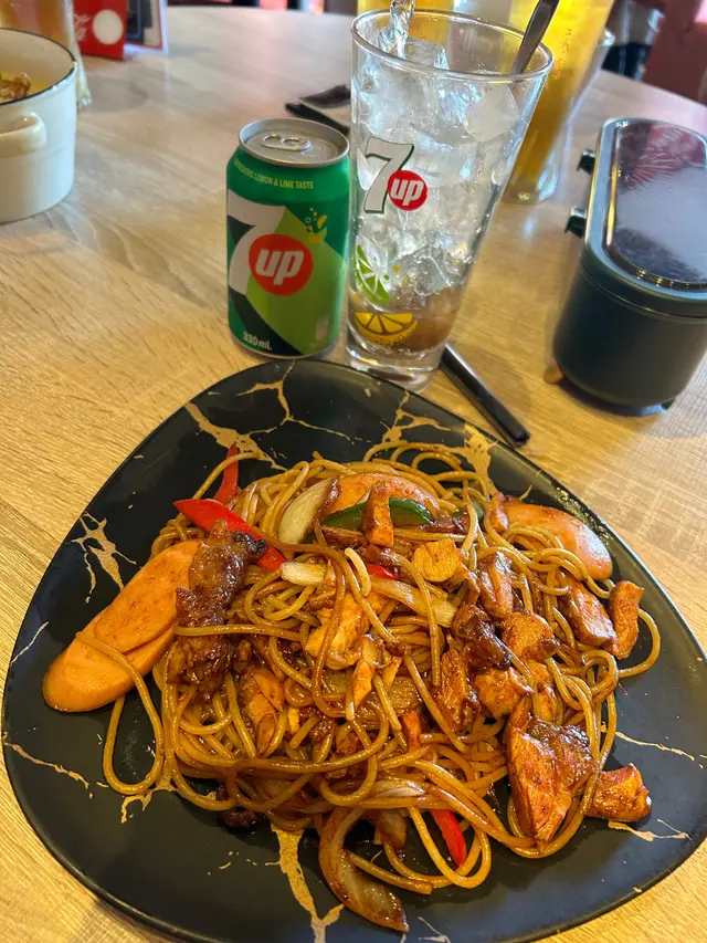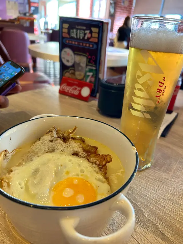行山十幾公里到淺水灣,原想大年初一在淺水灣休息,應該只有在沙灘旁的老外餐廳,喝個酒吃個漢堡吧!雖然價錢不便宜,但淺水灣真沒有甚麼選擇。誰知道朋友介紹到便利店旁的靠老外边(有点老外裝潢)的茶餐廳,它不但有大杯啤酒買一送一,就連下午茶餐也可以免費配送大杯啤酒。真是年初一的大發現。這開年確實有很好意頭。我太餓了,吃了炒面和咸檸七,炒面還好,味道也不錯。在這地$88的價錢不但意頭好,更是值了。朋友吃的公仔面餐,雖公仔面沒有味精,太健康,對吃公仔麵的人來說是淡口了,啤酒大大抔卻可以打消了這点兒不滿足的念頭。總之年初一是吃好了,好的開始。…查看更多