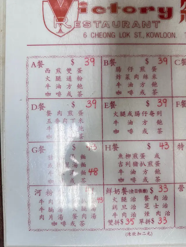 香港嘅舊式茶餐廳買少見少,一係老闆年紀太大冇後生接手,一係賣舖移民去,真係食一間少一間。今日剛巧有事放半日假,只有半個鐘食lunch,一於去最就近嘅維多利,人物不變,仍舊係食佢嘅經典全日供應早/特餐:沙爹牛肉麵、火腿煎蛋、牛油方包加飲品,價錢只係$39,轉多士唔使加錢,改凍飲亦只加$2,同其他同區茶餐廳比真係平一截