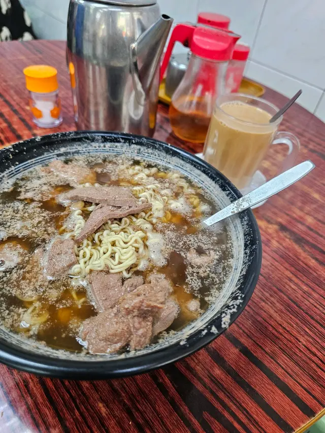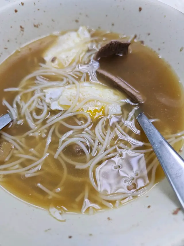 今日過來深水埗, 忽然又想吃, 又坐番中間的舖位, 又叫番豬潤🐷雞蛋🥚湯意粉, 凍奶茶少甜少🥤冰, 等左一陣, 飲品先到, 飲左一口, 我唔覺得係少甜😂, 茶同奶的比例都ok, 但唔係好飲到紅茶味, 只飲到甜味, 再隔一陣送上豬潤🐷雞蛋🥚湯意粉, 好熱辣辣, 飲啖湯先, 唔係好飲到乜嘢味, 不過又有少少甜味, 意粉食落正常, 浸左湯OK, 但感覺d湯飲左好口渴🙄😆, 再之後食d豬潤🐷, 都比得幾多, 但唔係切到好大舊個只, 有d碎濕濕, 但又唔係脆又唔係粉, 食落無乜味😅, 好似真係感覺無以前d質素敢好😂, 之前食d豬潤🐷係爽脆, d湯又有薑味🤣, 不過42元一碗都算係經濟抵食, 可能要求要降低d, 但食左之後都幾口渴🤐要不斷找野飲😶, 又真係唔係好得了😁😆…查看更多