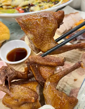 紅燒乳鴿 🐦紅燒乳鴿真係要大力推薦!隻鴿皮燒到金黃酥脆,超級過癮~ 入面嘅肉質嫩到出汁,輕輕一撕就見到豐富嘅肉汁係度流,鹹香味道調得啱啱好,一啖落去鮮香滿口,根本停唔到口!😋燒味拼盤 🍖呢個拼盤簡直係選擇困難症患者嘅福音!入面有叉燒、油雞、燒鵝、燒肉,豐富到想即刻樣樣試晒~ 叉燒帶住淡淡蜜糖香,肥瘦肉均勻;油雞皮滑肉嫩,雞味超濃;燒鵝皮脆肉厚,鹹香惹味;燒肉肥瘦相間,鹹脆適中配埋白飯簡直絕配🤤
