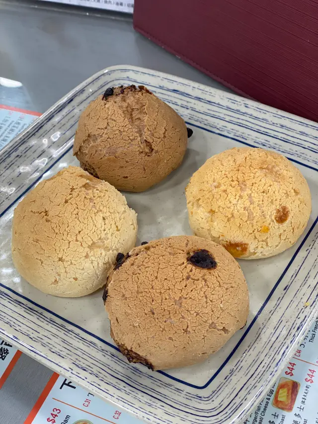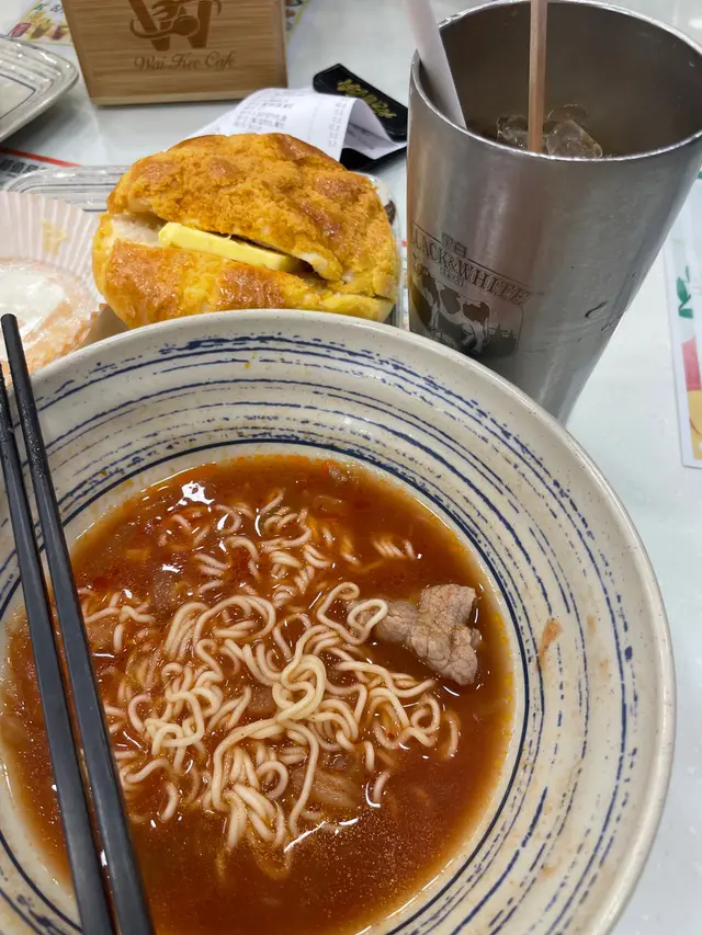 早餐五香肉丁麵,菠蘿包最唔抵食。個包底窿的