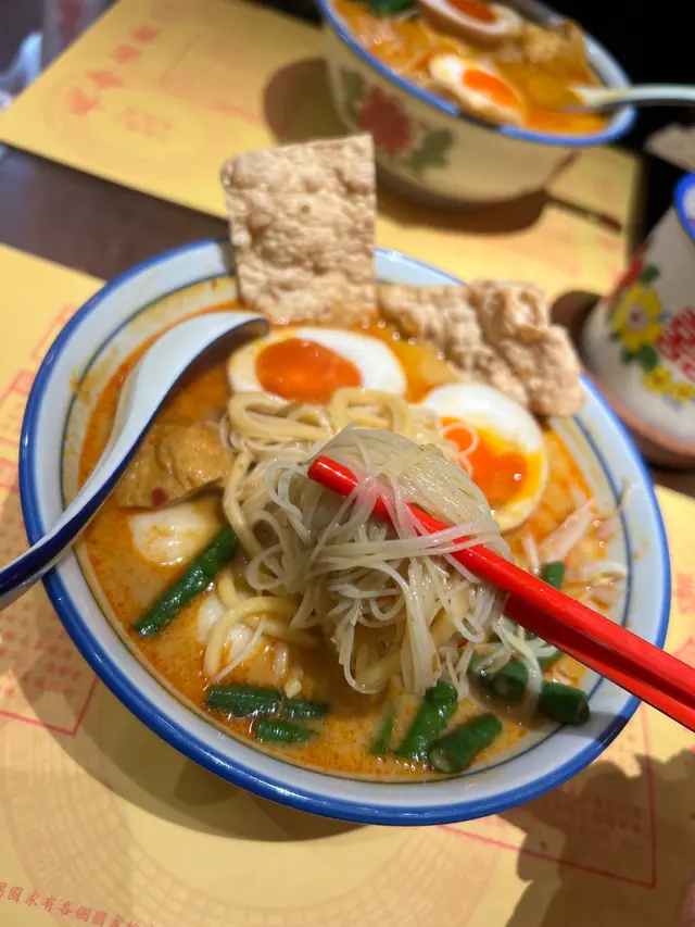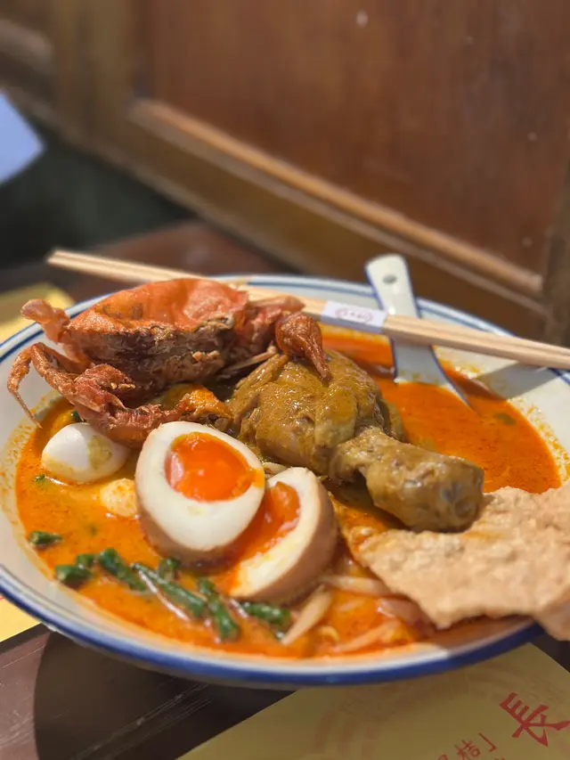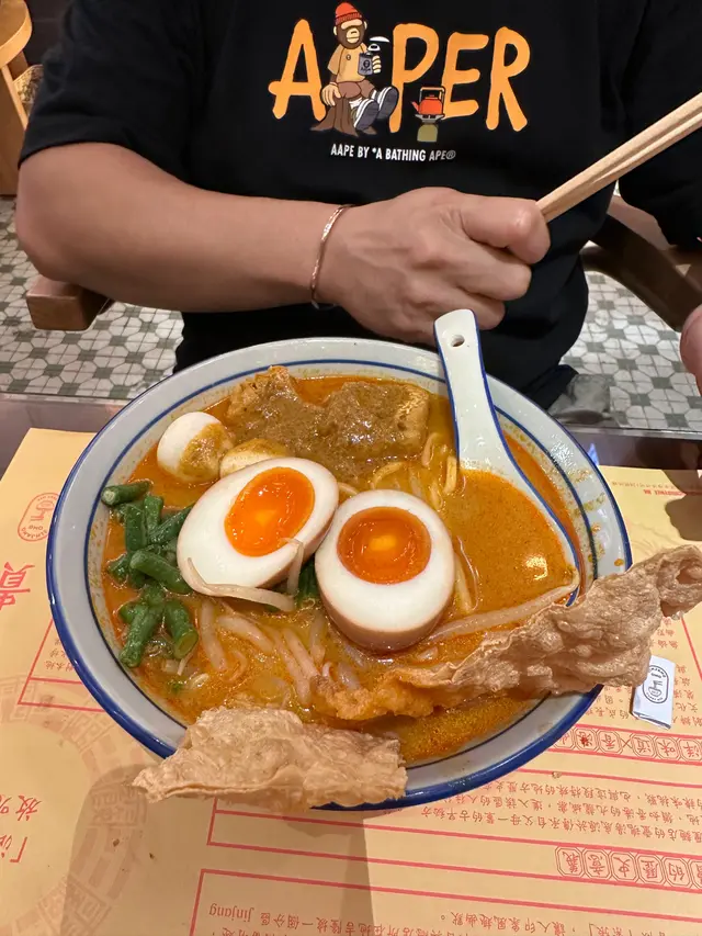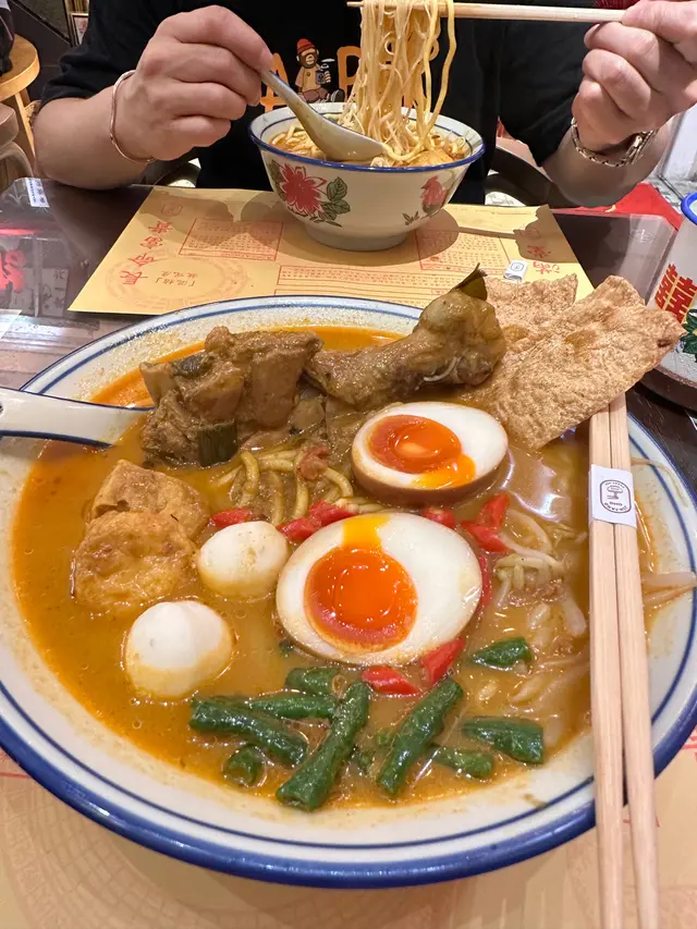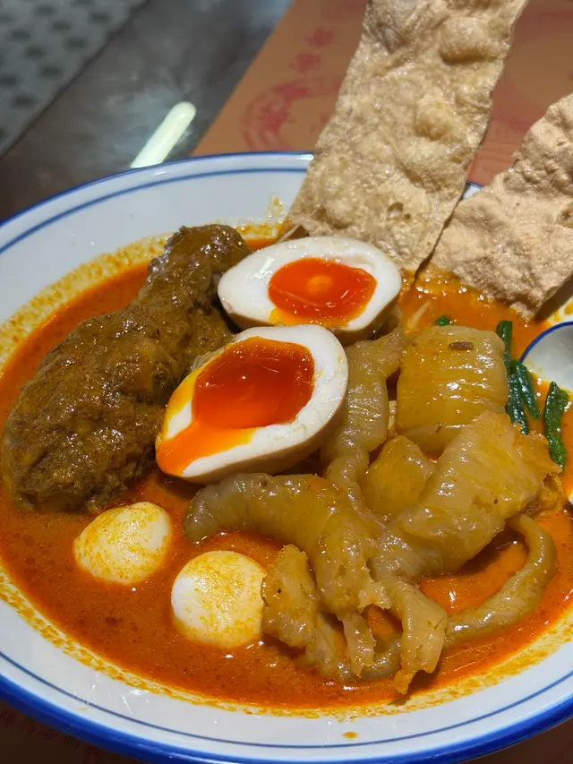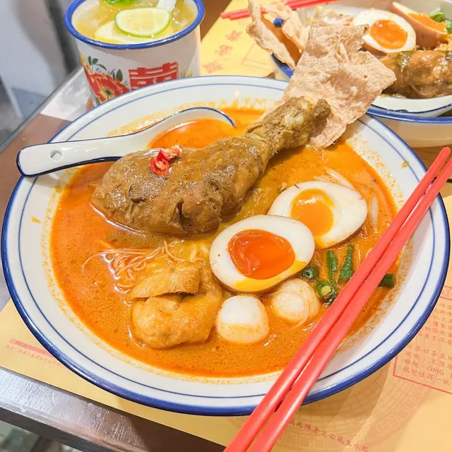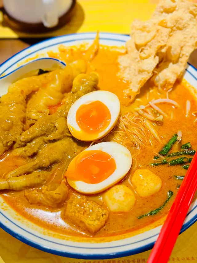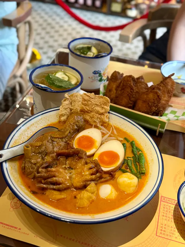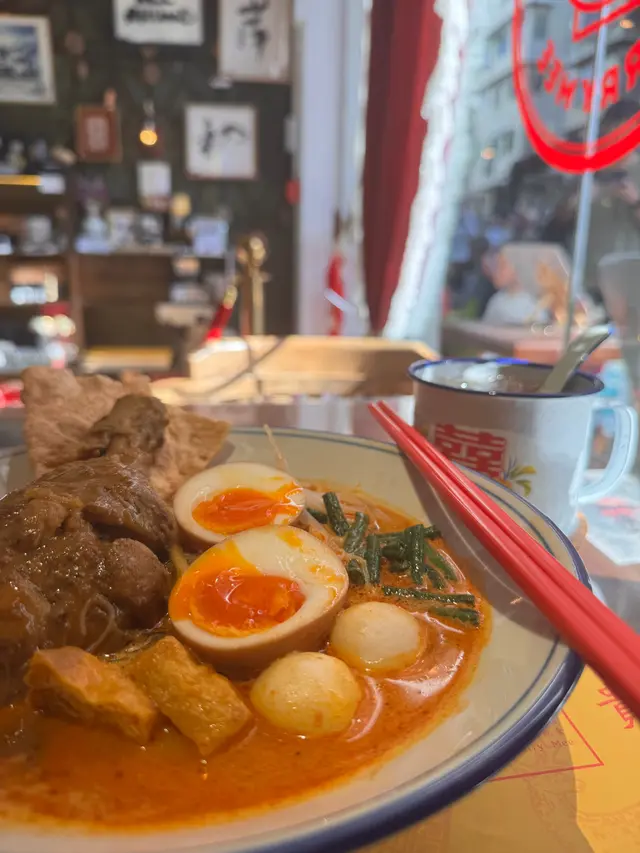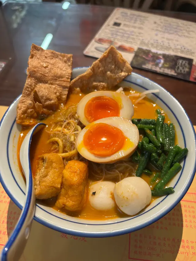 #pb食在深水埗 深水埗新開吉隆坡咖喱麵🍜好耐冇出post啦🤪 今次想介紹呢間位於深水埗新開嘅特色咖喱麵😋 佢本身係黎自馬來西亞吉隆坡 呢間係佢首間香港分店👍🏻 佢選址係深水埗汝洲街 店內裝修充滿懷舊特色😍 特格一讚幾位店員嘅服務態度都好好 會好用心介紹Menu 又有禮貌🥰.佢主打5款咖喱麵 其中4款湯麵、1款撈麵 價錢$58-$228不等👍🏻 辣度預設係微辣(唔緊張)可以再加辣🤪 其他小食同樣好有特色 包括沙葛沙律、蝦醬雞翼、咖喱雞腳等😋 飲品方面有咖啡同埋幾款桔仔水😍🔹CM1 好卵!好雞!緊張咖喱麵🐣推介❤️呢款係第二級咖喱麵 招牌咖喱麵加咖喱雞髀😋 佢嘅咖喱味好香、好濃 但口感唔會好漿口👍🏻 麵底係滲滲麵(油麵+米粉)雞髀好大隻 肉質幾滑😍 整體份量好多 加埋流心蛋、魚蛋、炸腐竹、豆卜、芽菜、豆角等配料 食到2/3已經覺得飽🤪🔹CM4 古早咖喱雞乾撈麵🍜呢款乾撈麵同樣有隻大咖喱雞髀😋 乾撈麵冇咖喱湯浸住 辣度相對冇咁高🤪 份量同樣好多👍🏻 🔹蝦醬雞翼🐣推介❤️ 雞翼好大隻 肉質好嫩滑😍 蝦醬味好香濃 但絕對唔會好鹹😋🔹闔家混桔🍊🔹蜜都混桔🍹兩杯都係桔子混酸梅水 一款加左橙汁 一款加左柚子蜜😋 味道酸酸甜甜 好refreshing 👍🏻 配埋咖喱麵食 好解漏😍.整體✨ 呢間位於深水埗新開嘅咖喱麵黎自馬來西亞吉隆坡 好有特色👍🏻 佢主打5款咖喱麵 咖喱味香濃但唔會好辣😋 雖然新開只有幾個月 但已經好受歡迎 6點幾已經見到唔少人排隊😍 緊張咖哩麵 (深水埗)深水埗汝州街128號地舖…查看更多