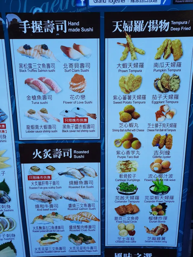 因為食物太多,小編重點講最令小編印象深刻果幾樣啦"刺身: 刺身當中小編最愛食虎蝦, 處理得新鮮, 無海水味, 肉質鮮甜, 滑又有咬口, 正!西日扒類: 羊架係必食, 小編食左3塊! 火喉夠哂再配上特調香料, 無得彈!天婦羅: 紫薯天婦羅係燒物中CP值最高,因為相對其他無咁肥膩,唔佔小編太多QUOTA但又滿足到小編中意食甜野既心 XD燒物: 鰻魚燒一定係最吸引的一樣, 佢地無燒到過龍, 又唔會燒唔夠熟太生, 所以保留到良好口感加魚肉的鮮味!卷物: 三文魚手卷一定要試, 佢同普通食三文魚壽司既分別唔係塊紙菜,而係漿汁先會帶出魚肉既靈魂, 增加到肉既TEXTURE!火鍋就原諒小編已經飽了, 俾唔到評價T_T:(整體黎講每人200元消費左右有咁多款美食落肚, 底到爛啦!