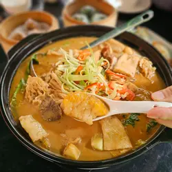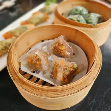 夏天天氣炎熱,個人都係想食清淡啲,清淡自然諗到食素菜,朋友特別搵咗呢間中式素菜館,餐廳主打中式素菜,並且以天然食材入饌,少鹽少油,適合著重健康的人士。餐廳裝條帶古式古香,座位舒適,而且所有熱點心都係熱辣辣上枱,大讚👍🏻。🌟筍尖蝦餃皇飲茶必叫蝦餃,素點心當然也要。蝦餃皮皮薄煙韌,內裏的餡料用上筍尖及素蝦,口感爽口,尖筍鮮味出晒嚟。🌟黑松露野菌餃飽滿的黑松露野菌,一打開已經滿滿的黑松露香,加埋野菌香味,濃郁好味。🌟竹笙素翅灌湯餃大大隻湯餃,餡料滿滿,而且湯餃好夠熱,湯頭清甜,竹笙吸收湯汁,爽口清甜。🌟齋滷味(三寶)食素菜當然要點齋滷味,這裏的齋滷味是熱食的,酸齋、豉油及咖喱齋,熱食又是不同的滋味。酸齋夠味,但鍾意再酸啲;而最好食係咖喱齋,有咖喱的濃香味。🌟甘筍鹹水角可愛造型的鹹水角,皮軟熟煙韌帶甜,內裏餡鹹香,鹹甜相配,好味😋🌟香酥咖喱角酥皮非常的香,入口鬆脆酥香,配惹味咖喱餡很不錯。🌟春風得意腸腸粉皮包著脆春卷,腸粉皮細滑,內裏包著菌菇菜粒爽脆,口感豐富。🌟雪山叉燒包店員推介的叉燒包,果然美味😋麵包熱辣辣又鬆軟,帶牛油香,內裏素叉燒惹味香濃,配埋一齊食超正👍🏻🌟山珍酸辣粉朋友想食酸辣粉,酸辣粉配料充足,用上薯粉夠煙韌及掛汁,湯夠酸辣,且帶花生香,十分惹味,內裏有大量配菜如大豆芽菜、椰菜及香菇等,口感多層次。🌟特色芒果布甸傳統芒果布甸,但做成花盆的樣子,可愛又好食,兒時回憶返晒嚟☺️🌟原隻椰皇燉桃膠又係必點推介,即叫即燉的椰皇燉桃膠,椰皇清甜帶椰香,而桃膠大大份而且好乾淨,清甜滋潤👍🏻…查看更多