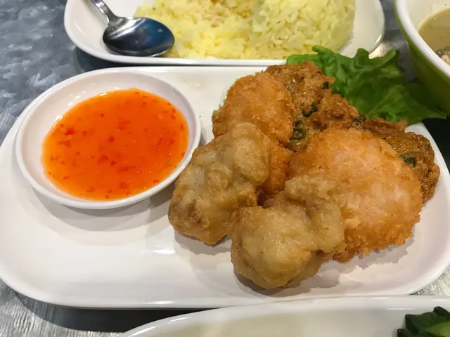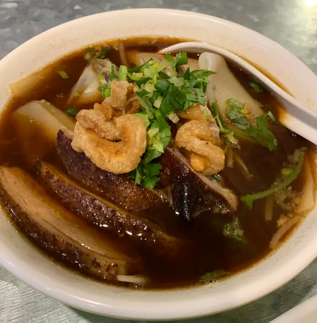 去看演唱會前光顧了這泰式料理小店,就在厚褔街,很方便,吃完可以慢慢步行去紅館。 藍加白的裝俢,有別於傳統的泰式食店,很新穎。店內四四正正,有懷舊的地磚。牆上的裝飾品也很特別。餐牌簡潔。海南雞湯河海南雞夠滑,沒什麼骨,還有炸脆脆,深色的湯底味道剛剛好,不會太濃味,也夠熱騰騰。泰式鴨肉湯河濃濃鴨味,鴨肉份量多,多蔥,YEAH!! 味道不錯!!炸三色餅有魚餅,墨魚餅及蝦餅,是現炸的,各有2件,配上醬汁,夠惹味。通菜可選以蒜蓉,馬拉盞,泰式或飛天炒, 我們選以馬拉盞炒,夠美味。食后感:雖是小店,但坐得夠舒服,上菜夠快之餘味道也有一定的保証。