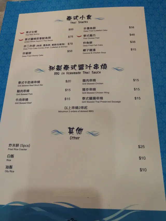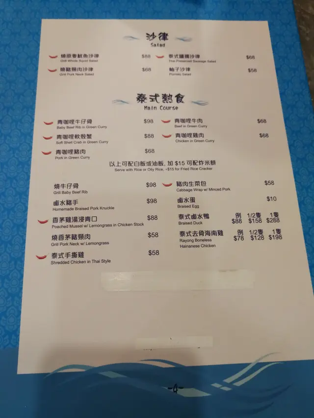 一餐食晒呢度嘅雞牛豬,真心覺得佢啲肉好唔錯,一啲肥肉都冇、完全唔韌同'hai',不過份量大家睇相都睇得出係非常少,如果細食嘅人口痕想食泰國野就可以叫個粉再叫個小菜食下。如果人多啲嚟,相信差唔多可以叫晒全個menu