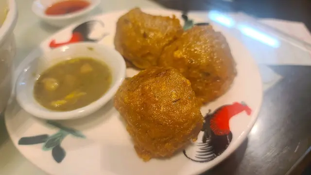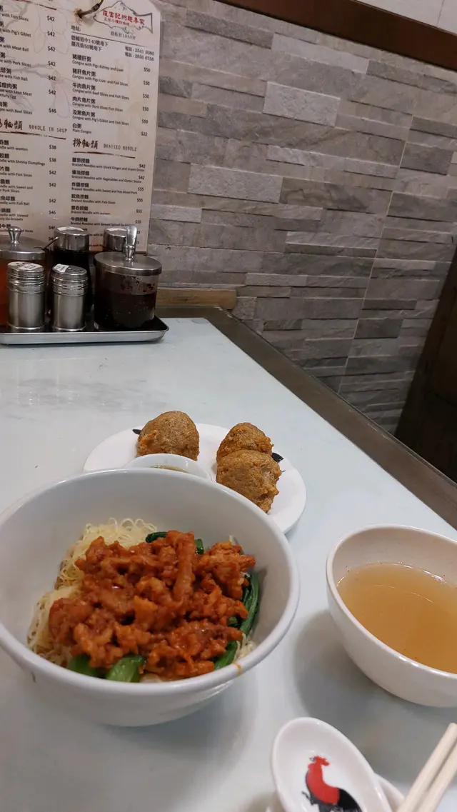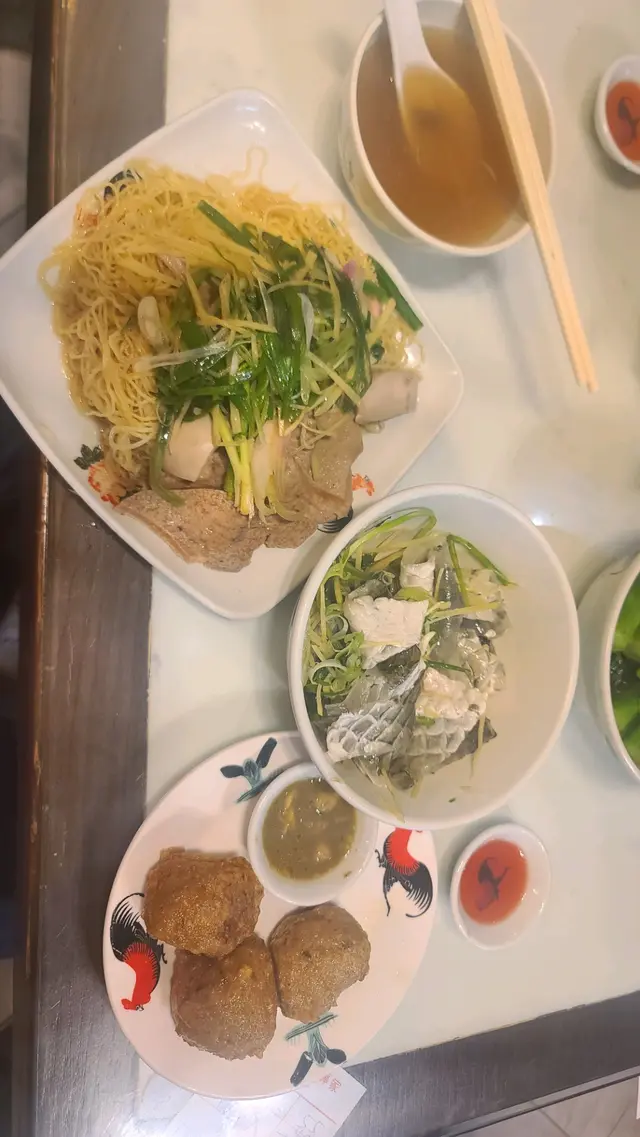 腰肝(豬)撈麵,爽脆魚皮,炸鯪魚球配蜆蚧汁