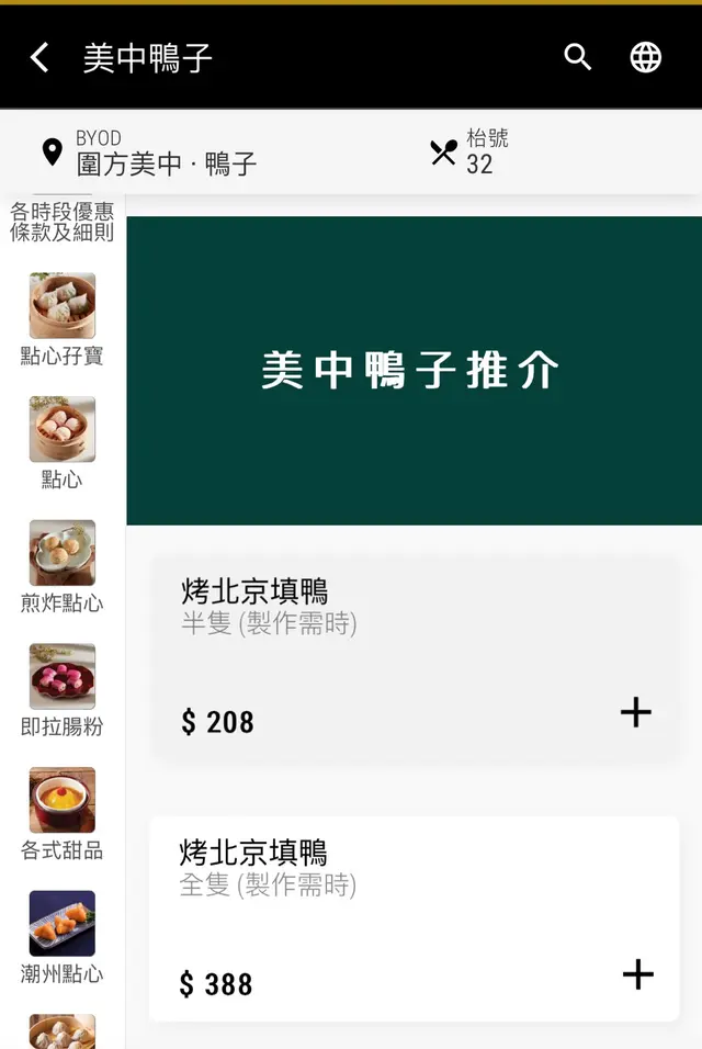 今次同朋友去咗圍方嘅「美中·鴨子」試吓京菜,整體感覺普普通通,冇乜驚喜,同大家分享下真實食評。🦆 北京填鴨 ($388)▪️ 鴨皮唔算好脆,味道唔錯但唔算高水準▪️ 醬料正常,配菜款式都非常足▪️ $388呢個價錢,出面好多地方做得更好🥢 其他菜式表現蒜泥白肉 ($98)☑️ 蒜味夠但肉質唔算好嫩☑️ 醬汁調味夠惹味雞絲粉皮 ($88)☑️ 粉皮夠爽滑☑️ 雞絲比例多,麻醬味都好吸引醬爆里脊絲 ($168)☑️ 肉質算嫩但醬汁鹹左少少☑️ 份量唔算多,性價比低🥟 點心類小籠包 ($88)☑️ 皮薄有湯,價錢較進取仿膳三味齋 ($88)☑️ 三款素菜都好開胃🍹 飲品荔枝涼透心 ($56)蝶豆花菠蘿冰 ($56)如果真係想食京菜,又想近近近地嘅話可以選擇,但係性價比真係唔高。優點係環境乾淨,適合一大班人去,但食物質素真係有待改善。…查看更多
