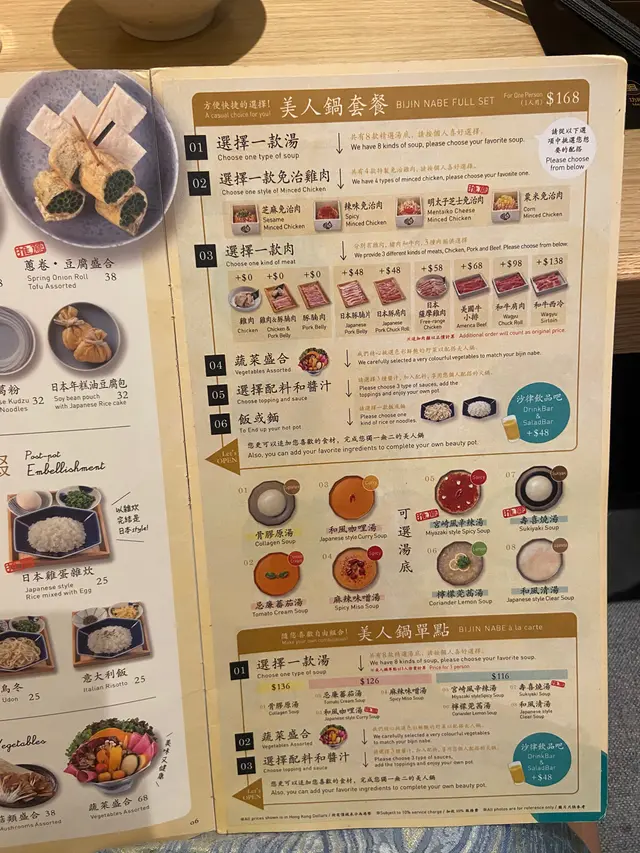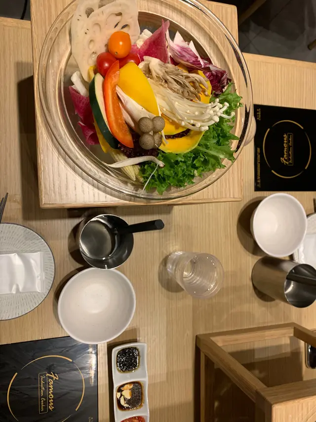 Ordered the set hotpot for 2 people, each would get their own pot which is nice and clean especially during pandemic. Also for the fact that people have different preference for the soup. With the set, you can a choice of meat (you can add extra to get better quality slice beef) so we went for a chicken and a beef for the meat plate. There's an assorted veggie to share. I would wish they could have been more generous with the veggie as they are not that pricy. The plating is nice but the veggie shrink to tiny bit. They have a drink section where you can serve yourself and pick what you want. For carb, you can pick from rice, udon, soba and noodle. The service is quick. The resto is bring and japanese beige color in style. The seatings are comfy.…查看更多