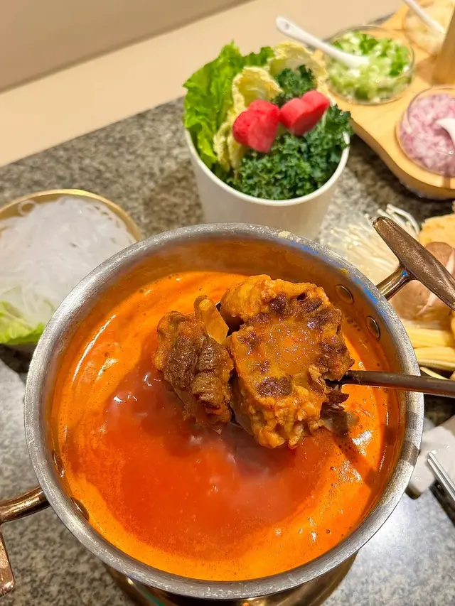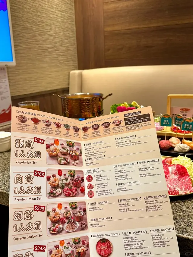 呢間美味廚真係顛覆咗想像,由湯底到配料都充滿驚喜,有好多估都估唔到嘅組合~作為一間連續14年榮獲米芝蓮必比登推介嘅火鍋店,水準點都有返咁上下!今次個 Restaurant Week menu 又係勁抵!我哋揀咗呢度其中一款嘅經典湯底:冬蔭功 Cappuccino!!☁️ 個Foam 係用椰奶、忌廉打成泡沫,再灑上唂咕粉~令到個冬陰功湯底更加奶滑,同牛肉、海鮮都好夾,唔係得個樣!另外仲有鹹菜胡椒豬肚湯同埋英式紅酒牛尾湯 (牛尾湯入面有勁多牛尾,燉到勁腍超多膠質好正!)生猛基圍蝦(6隻) <--- 係每人6 隻,上枱嘅時候真係震撼排排企 🦐🦐🦐🦐🦐🦐肉類日本宮崎A5前肩肉,日本熊本黑豚梅肉,內蒙特選肥羊,走地黃油雞脾肉(呢度嘅丸子、水餃都是每日新鮮製作㗎!)手打粒粒鮮墨魚丸,梅菜豬肉丸,香濃芝士釀鮮牛丸,手打雞肉鵪鶉蛋丸 - 大推梅菜豬肉丸,鹹香又彈牙豉椒牛肉餃,北京填鴨餃,蜜汁叉燒甜豆餃,南乳素齋餃 - 大推北京填鴨餃,勁香鴨味,估佢唔到!反而個汁叉燒甜豆餃啲蜜豆大家一致覺得唔多夾😂仲有蔬菜,豆腐,菇菌同埋麵,食到捧腹而回~ …查看更多