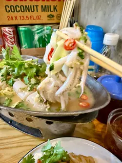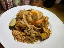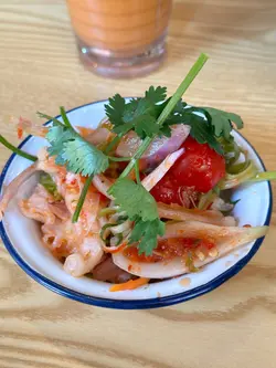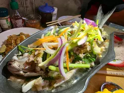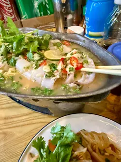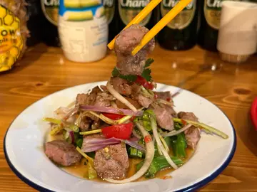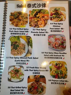 美味的泰國菜,位於深水埗同長沙灣之間,都算幾近地鐵站附近,雖然好多食肆但嚟到嘅時候都有幾張枱喺度排緊隊🤯店舖唔係好大但坐咗好多人,同埋都係幾有泰國風味嘅裝修😆全泰國人主理,餐牌一睇就知性價比好高🖖🏻泰式柚子沙律,擺得幾精緻😍個沙律汁酸酸甜甜辣辣地,好惹味!配埋柚子同埋鮮大蝦,相當唔錯嘅泰式沙律🥗又滋味又開胃👍🏻黃咖哩炒軟殼蟹,今晚嘅主角👑黃咖喱加入咗蛋一齊炒,非常惹味,連啲配菜都好好味😋軟殼蟹炒到入晒味,仲要大大隻,有成幾隻喺入邊,份量驚人,味道非常之好,又Juicy又好有泰式風味🩵配蒜蓉包,就咁食已經好有蒜香好脆,加埋濃味嘅黃咖喱汁,簡直一絕🤤大推冬陰功湯金邊粉,大大碗,好香嘅冬陰功湯,海鮮料好足又夠鮮味,冬陰功好好飲😵吸晒湯嘅金邊粉都好正,高質👍🏻泰式豬頸肉炒飯上枱好香,豬頸肉燶邊有焦香,好味😋飯同埋啲蛋一齊炒,幾特別幾好味,以為係一碟普通嘅飯,但係都相當唔錯😌菠蘿沙冰,超冰涼唔會太甜幾清新高手在民間🤘🏻其實入到去見到有泰國客用泰文叫嘢食,就知道一定係夠正宗嘅泰國風味🇹🇭性價比相當之高,試過你就知,希望你黎唔使排隊😌…查看更多