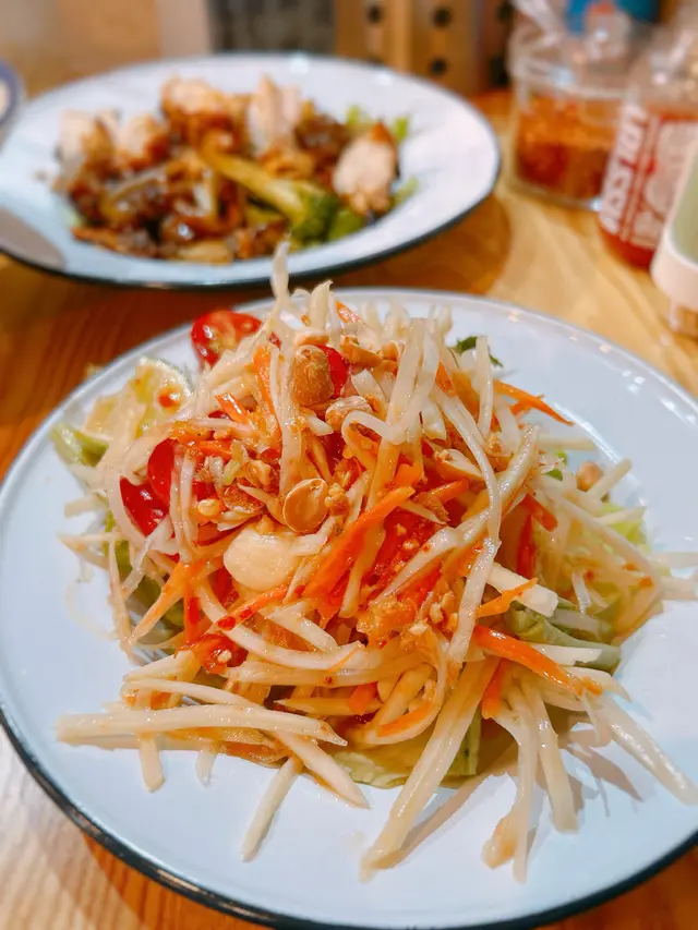【深水埗區】【美味的泰國菜】搵亞媽,喺佢屋企附近食飯。佢好多間餐廳都食過,偏偏就係未食過呢間,所以我就同佢試吓。佢唔試嘅原因,係因為間嘢好多人,所以我哋接近下午兩點先去,都好彩仲有一張枱,就坐低咗。我作為一個外區人,唔識呢間嘢,但係都真係覺得幾多人。我哋 share 食,叫咗兩款主食,首先係 $78 嘅「泰式炒寬粉」配海鮮,未食過泰式嘅寬粉,估唔到幾好食,有少少似紅薯粉,配料都幾多,正。跟住仲有 $75 嘅「泰式豬頸肉炒飯」,豬頸肉勁多塊,配埋個汁好惹味,個飯亦都好熱同好香,成件事唔錯。午餐套餐送沙律或甜品,我哋揀咗「酸辣鳳爪」同「青木瓜沙律」,兩者都好有泰國風味,開胃一流。餐飲佢飲凍「泰式檸檬茶」,我飲凍「泰式奶茶」,最大嘅特色係佢哋都唔會話好甜,有時飲呢啲泰式飲品,就係最怕佢哋得鋪死甜,呢度就唔會咁喇。除咗兩個套餐之外,我哋再試咗兩樣嘢。首先係 $23 嘅「炸蝦餅」,唔算好大件,但係炸得啱啱好,蝦味亦都好香。之後係 $38 嘅「泰式炒通菜」,最驚喜係呢碟,因為本身以為會好鹹,點知一食就停唔到,估唔到咁過癮。咁樣食法埋單至 $214,抵食啦。。。(地址:長沙灣元州街162號地舖)@aimaroi_thaifoodshk#1amfoodie #foodie #hkfoodie #thatfoodiething #hkfood #food #instafood #yummy #foodlover #delicious #foodies #tasty #globaleats #tastyfood #foodpics #followforfollowback #love #eat #1am深水埗區 #長沙灣 #深水埗 #美味的泰國菜 #泰式炒寬粉 #泰式豬頸肉炒飯 #酸辣鳳爪 #青木瓜沙律 #泰式炒通菜 #炸蝦餅 #泰式檸檬茶 #泰式奶茶 #1am1890 #1ambackup…查看更多