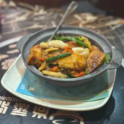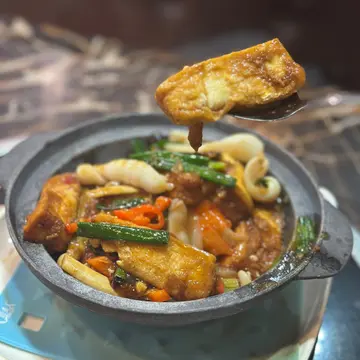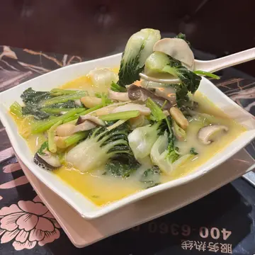 今日就同朋友去左美富菜館海鮮蒸氣火鍋餐廳環境舒適,有好多鑊氣小炒選擇海皇豆腐煲豆腐炸至金黃,外酥內嫩,配搭鮮甜海蝦、魷魚等海鮮配料,整體口感豐富濃湯野菌浸菜苗份量超大,上湯湯頭香氣十足,菜苗同野菌索滿湯既精華,味道濃郁鮮香避風塘雞中翼面頭鋪滿大量炸蒜粒,蒜香濃郁,雞中翼夠唒大隻,炸到金黃香脆,肉質Juicy 嫩滑,味道鹹鮮香辣,香口惹味椒絲腐乳炒時蔬腐乳鹹香完美均勻包裹蔬菜,通菜依然保持清甜爽脆,鑊氣十足