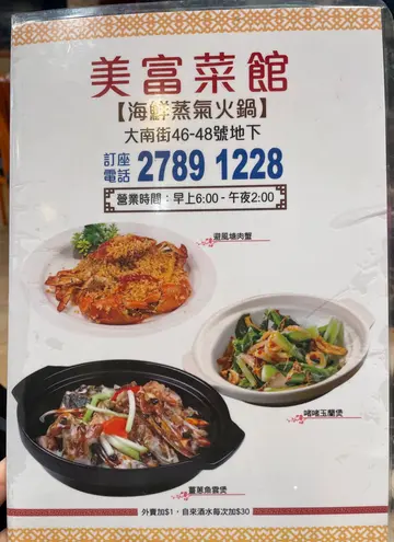 今日同老婆去太子大南街「美富菜館海鮮蒸氣火鍋」,佢地以鑊氣小菜出名,地舖位置易搵,環境算乾淨企理,坐得都舒服。 我地點咗三樣餸,首先試咕噜肉~ $108,塊肉炸得外脆內軟,唔會太油,糖醋汁調得岩岩好,唔會過甜,咬落有汁,幾有水準。跟住係古法生炆龍躉腩煲~$178,龍躉腩夠大件,炆得夠腍,肉質滑嫩,冇腥味,再加上有火腩,支竹,豆卜等配料,醬汁入味,撈飯食一流,镬氣好足,食得出師傅手藝。瑶柱蛋白炒飯~$78,飯粒分明,蛋白夠滑,瑶柱味夠香,唔會太淡,分量都夠兩個人食。 最抵讚係全店免收加一,呢個價錢食到咁嘅質素,性價比算高。整體嚟講,餸菜有水準,真的鑊氣夠,上菜服務快手,下次想食小菜可以再嚟。 #太子美食 #美富菜館 #镬氣小菜 #香港食評 #龍躉腩煲 #咕噜肉 #免收加一…查看更多