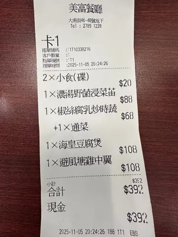 位於太子的「美富菜館」提供傳統廣東美食,還有很多經典佳餚,每樣餸都用心製作,而且大大碟,絕對適合三五知己來把酒言歡。🥢杞子豬潤浸勝瓜 $98新鮮清甜的勝瓜,搭配豐腴的豬潤與杞子。湯汁清澈卻不失鮮香,令人食不停口。🥢古法生炆龍躉腩煲$178龍躉肉和腩肉放在熱辣辣的瓦煲內,上枱時吱吱作響,香氣四溢。龍躉肉經過慢火炆煮,肉質軟嫩,入口即化。支竹吸收了濃郁的湯汁特別好吃,腩肉的油脂與瘦肉的比例恰到好處。🥢乾炒牛河$68炒河粉的火候掌握得當,外焦內軟的口感令人驚艷。牛肉切片鮮嫩,與韭菜和豆芽的搭配,為整道菜增添了清新的口感。真讓人回味無窮。🥢竹蔗茅根水一揸$37剛煲好的“竹蔗茅根水”消暑解渴,非常適合搭配這些重口味的菜色。
