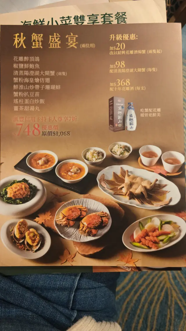在openrice買了二人餐券,連加一茶芥每人平均大概460蚊,但份量少得可憐,不是最後有一大碟炒飯塞飽自己個肚,我估計返屋企途中要去麥當勞買個包。這個餐性價比非常之低,每人得一隻餓到冇乜肉的大閘蟹 ,食完都唔知自己食左乜,但居然話自己係大閘蟹盛宴!…查看更多